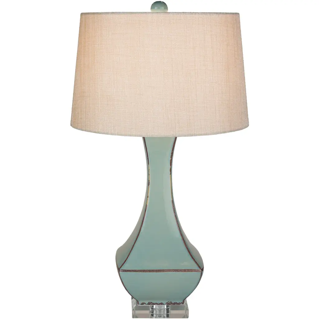 Illuminate your living space with Livabliss Enclave Glazed Table Lamp. This lamp boasts a subtly curved ceramic base on a clear acrylic stand, adding a touch of modern charm to your decor. Featuring a glazed finish and a beige linen shade, this lamp is available in four captivating colors to enhance your home.Features:Dimensions: