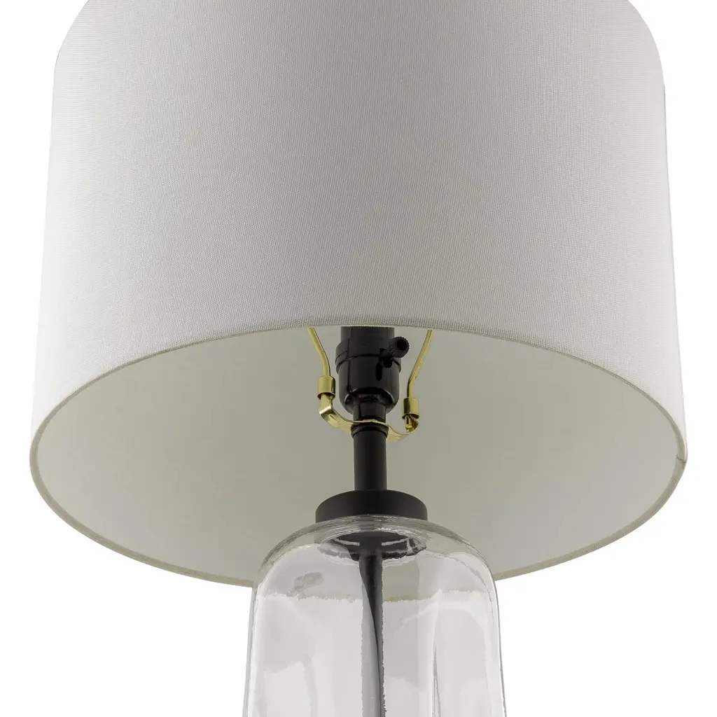 Illuminate your space with the unique Fidel Accent Table Lamp. This industrial rustic styled lamp blends functionality and style to provide a charmingly warm glow in any room. Composed of a sturdy metal base that supports a lustrous glass body, it stands 24 inches tall, making it an ideal statement piece for your home or office. Crowned with a soft cotton shade, this lamp creates an inviting atmosphere and diffuses light beautifully across your space. Its care is hassle-free; simply wipe clean with a dry cloth, ensuring its finish stays pristine and gleaming. Get ready to enhance your decor while adding functional lighting with our Fidel Accent Table Lamp!
