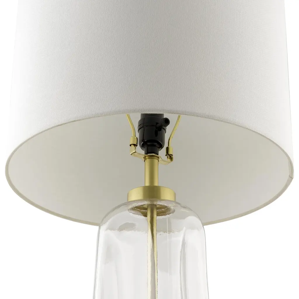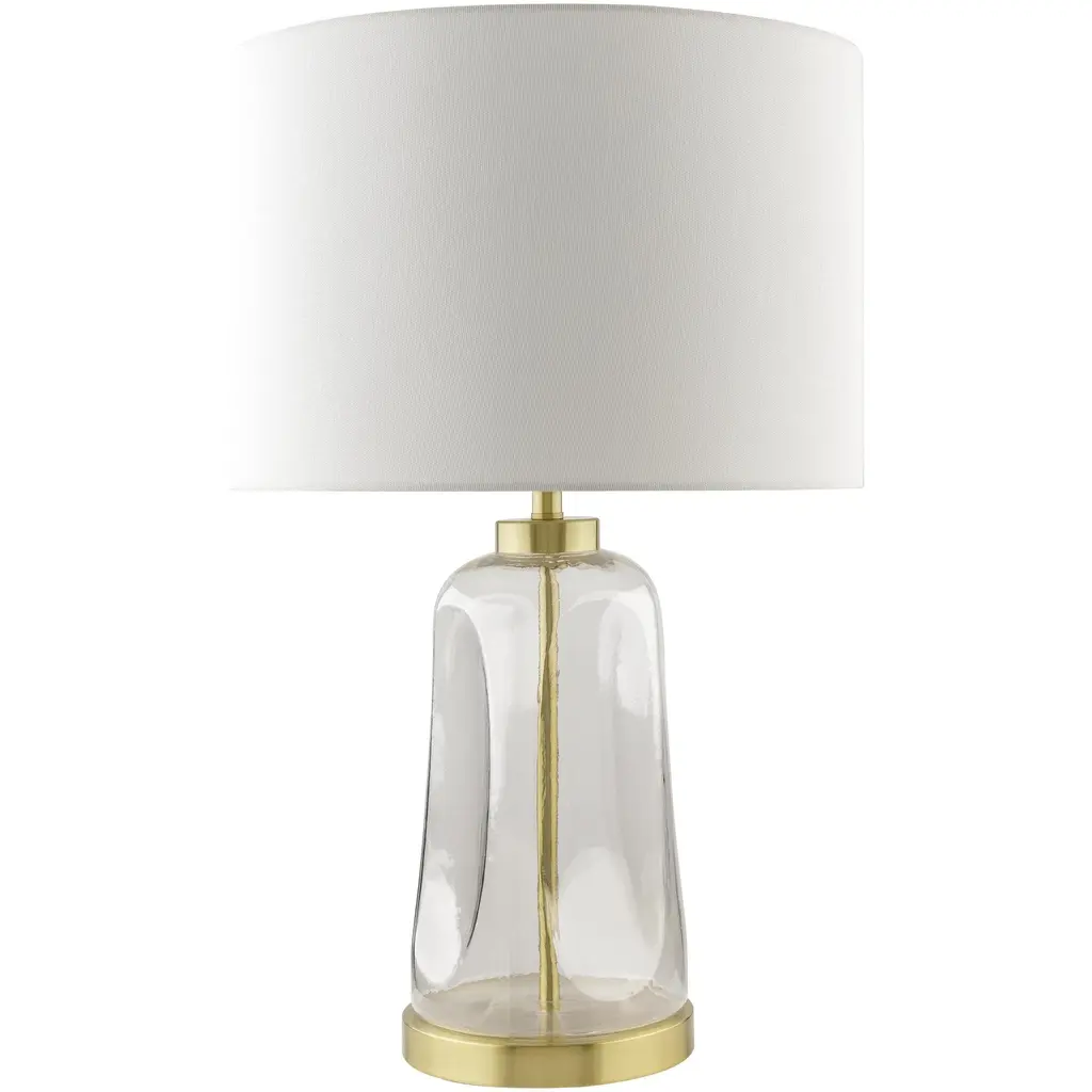 Illuminate your space with the unique Fidel Accent Table Lamp. This industrial rustic styled lamp blends functionality and style to provide a charmingly warm glow in any room. Composed of a sturdy metal base that supports a lustrous glass body, it stands 24 inches tall, making it an ideal statement piece for your home or office. Crowned with a soft cotton shade, this lamp creates an inviting atmosphere and diffuses light beautifully across your space. Its care is hassle-free; simply wipe clean with a dry cloth, ensuring its finish stays pristine and gleaming. Get ready to enhance your decor while adding functional lighting with our Fidel Accent Table Lamp!