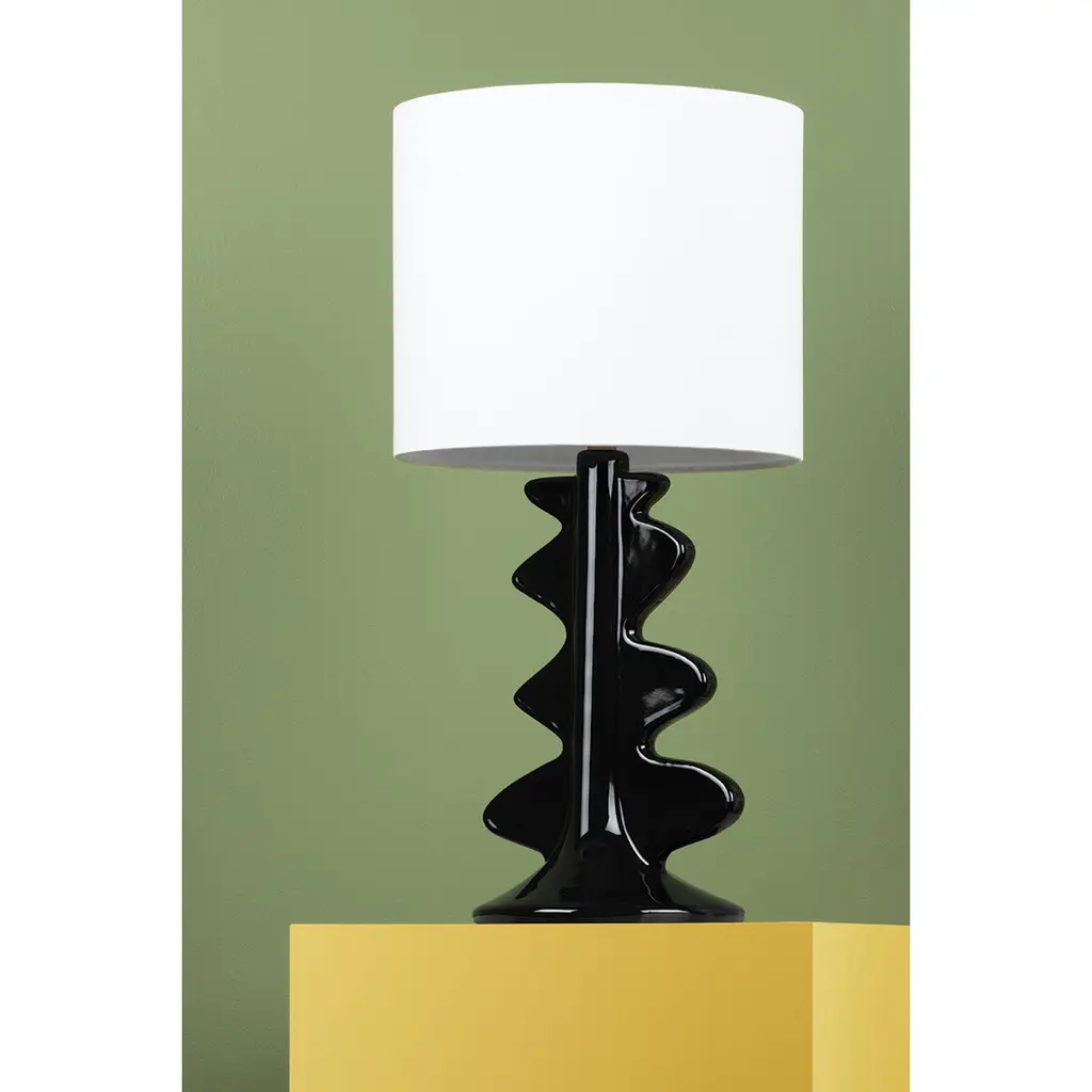 A table lamp that doubles as abstract art, Liwa lights up the room with style. The smooth, fluid shape of the ceramic base gives the piece both a sense of calm and a feeling of movement. The slim profile allows Liwa to make a big statement without taking up a lot of table space. Made to suit any décor, the glossy black or white finish is perfectly topped off by a crisp white linen drum shade.