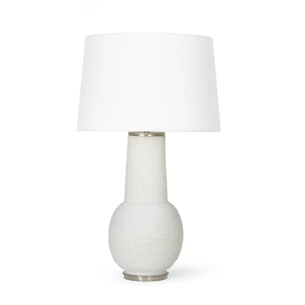 Chic yet playful, the Lizza Table Lamp's neutral palette and textured surface will provide your interior with a quality modern piece. Meticulously strung matte white beads wrap around its base, adding striking details that will elevate any decor style. Place the Lizza on a nightstand or an end table in your living room for a unique accent.