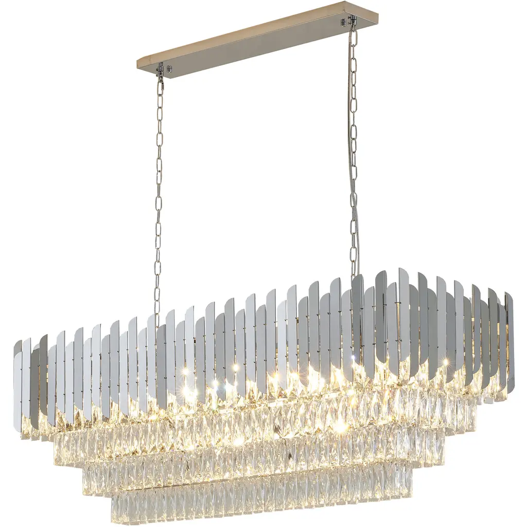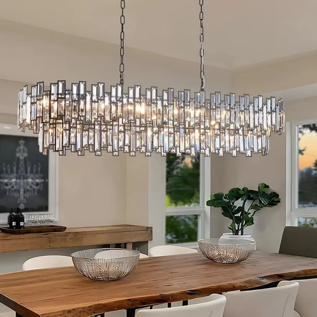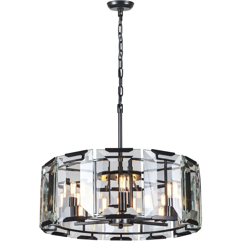The Chispa collection is one of our best-sellers, and it? easy to understand why. With its stunning crystal shades and sleek, modern structure, it? a versatile choice for any project. Featuring an iron frame encased in shimmering, rectangular-faceted crystals, this update to the classic crystal fixture combines clean, symmetrical lines with an elegant touch. The transitional design of the Chispa makes it adaptable to a wide range of spaces, offering the flexibility to suit various personal styles. Its black and crystal combination pairs seamlessly with silver, gold, black, or bronze finishes, and complements everything from a Tiffany table lamp to a contemporary bubble couch. The Chispa Collection includes a full range of chandeliers, islands, pendants, flush mounts and sconces, in various shapes and sizes, making it an ideal choice for any space.