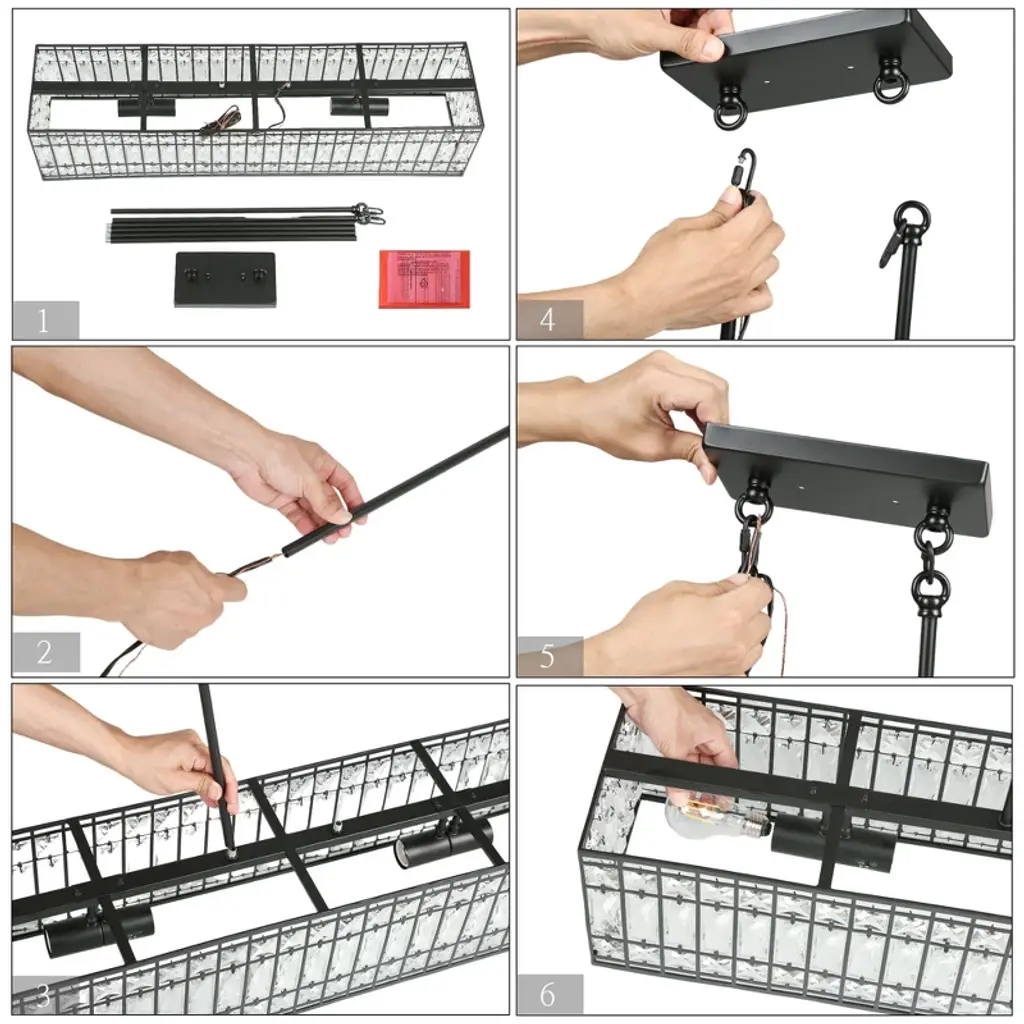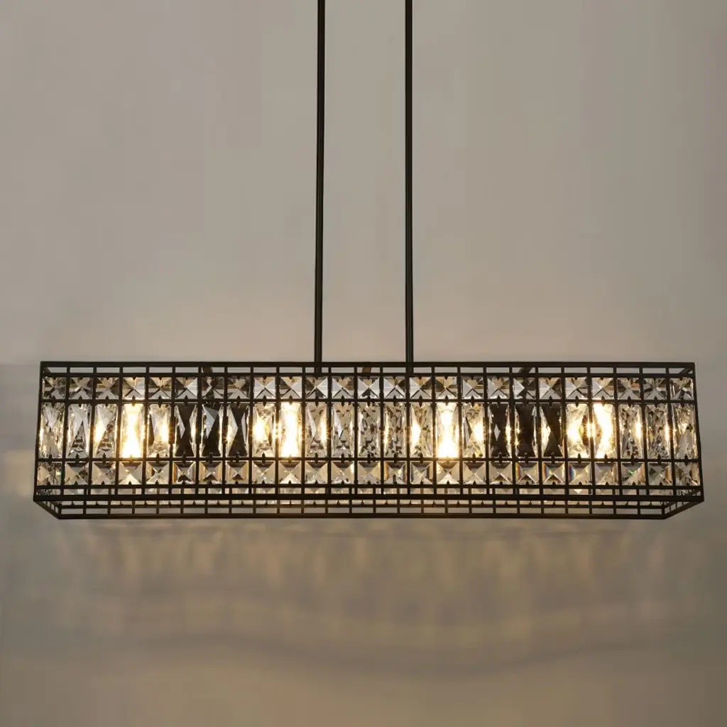 Lnc Chispa 4-lights 35.4" Modern Oversized Luxury Rectangle Crystal Chandelier, Black And Crytal