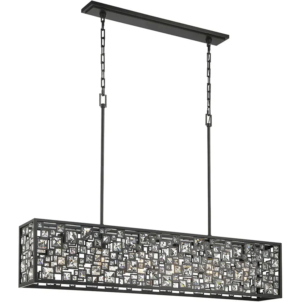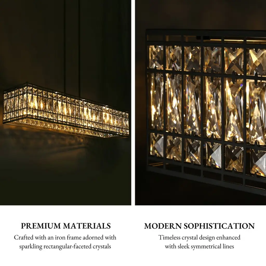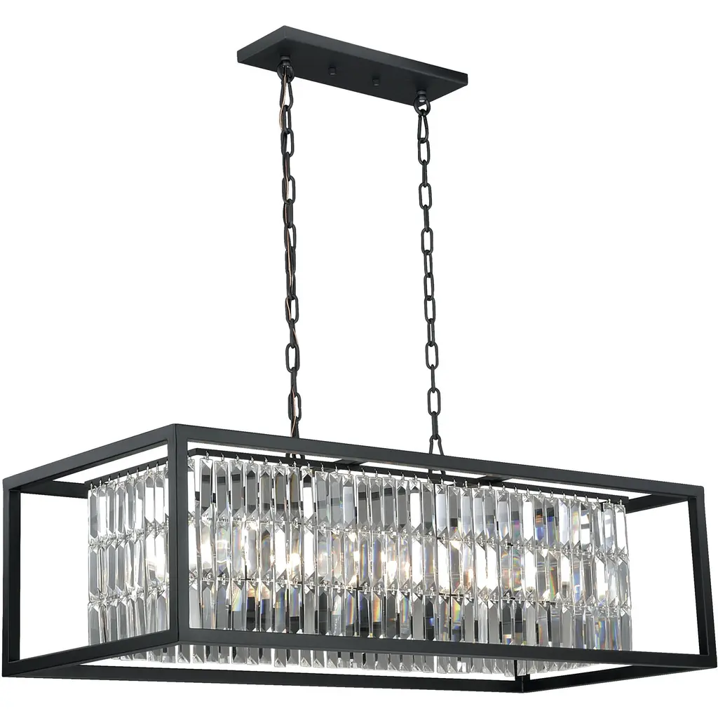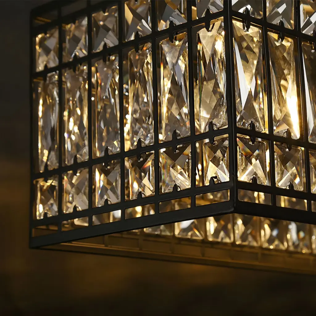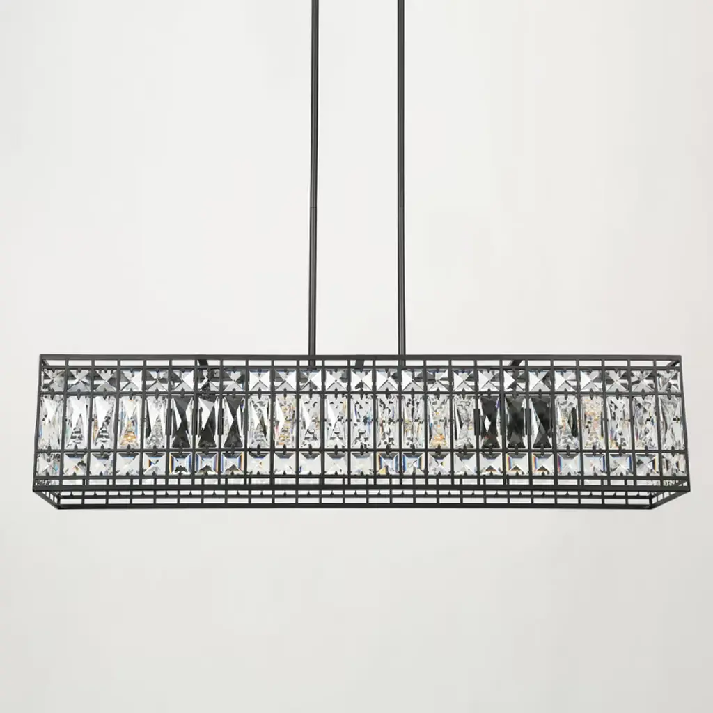 The Chispa collection is one of our best-sellers, and it’s easy to understand why. With its stunning crystal shades and sleek, modern structure, it’s a versatile choice for any project. Featuring an iron frame encased in shimmering, rectangular-faceted crystals, this update to the classic crystal fixture combines clean, symmetrical lines with an elegant touch. The transitional design of the Chispa makes it adaptable to a wide range of spaces, offering the flexibility to suit various personal styles. Its black and crystal combination pairs seamlessly with silver, gold, black, or bronze finishes, and complements everything from a Tiffany table lamp to a contemporary bubble couch. The Chispa Collection includes a full range of chandeliers, islands, pendants, flush mounts and sconces, in various shapes and sizes, making it an ideal choice for any space.