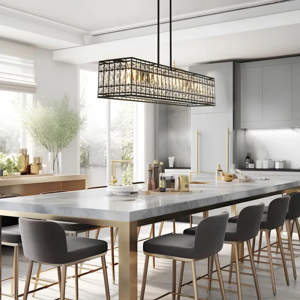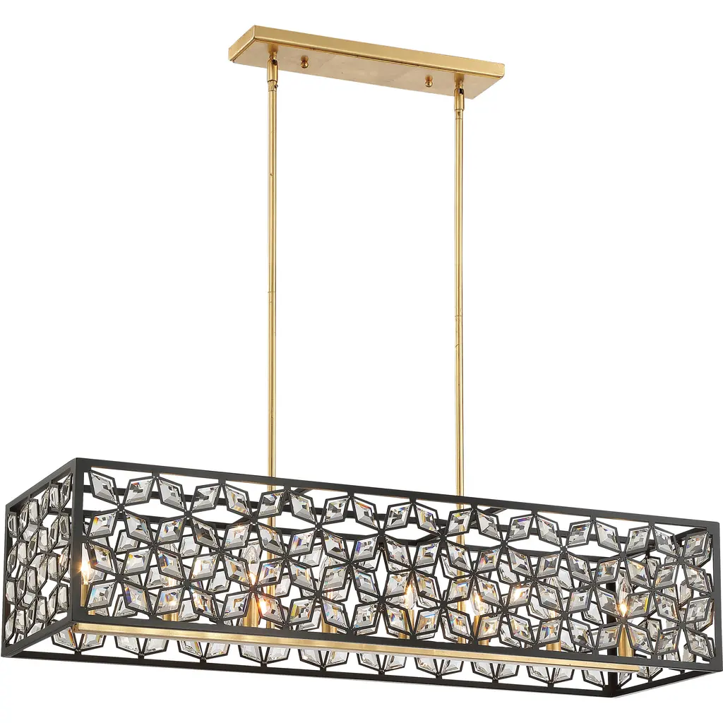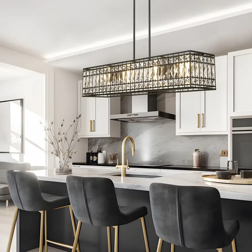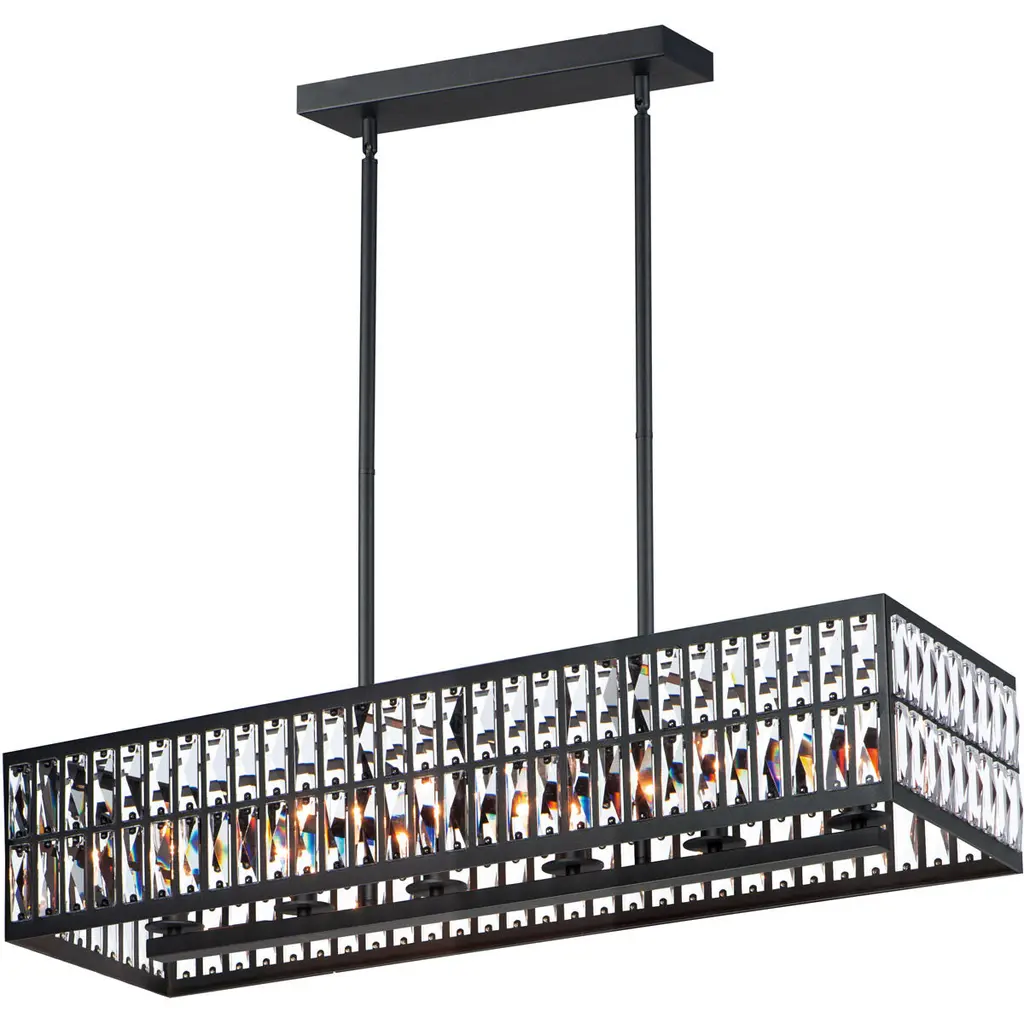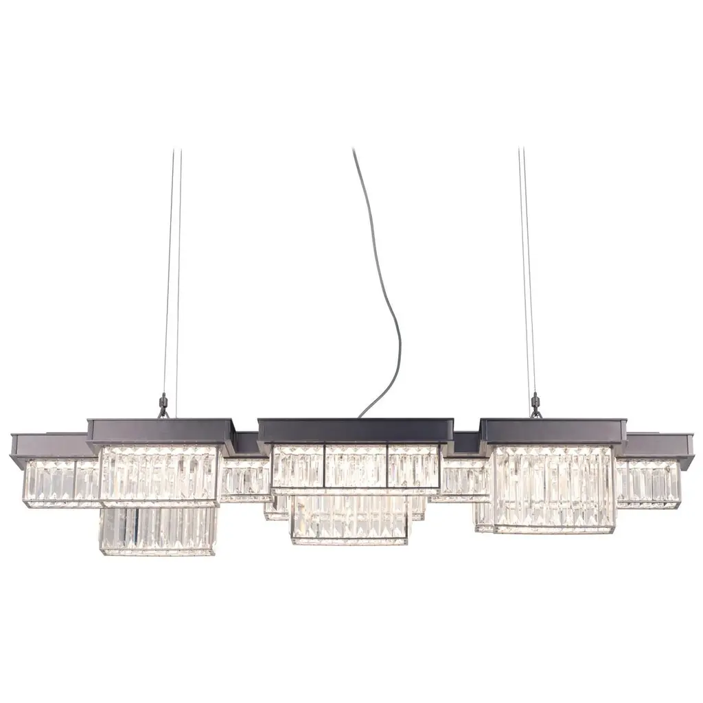 The Chispa collection is one of our best-sellers, and it’s easy to understand why. With its stunning crystal shades and sleek, modern structure, it’s a versatile choice for any project. Featuring an iron frame encased in shimmering, rectangular-faceted crystals, this update to the classic crystal fixture combines clean, symmetrical lines with an elegant touch. The transitional design of the Chispa makes it adaptable to a wide range of spaces, offering the flexibility to suit various personal styles. Its black and crystal combination pairs seamlessly with silver, gold, black, or bronze finishes, and complements everything from a Tiffany table lamp to a contemporary bubble couch. The Chispa Collection includes a full range of chandeliers, islands, pendants, flush mounts and sconces, in various shapes and sizes, making it an ideal choice for any space.