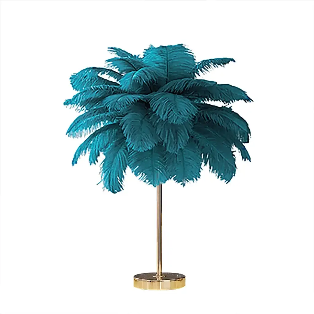 Loftus Art Deco Gold Portable Table Lamp With Green Feather Usb Charging & Dimmable
