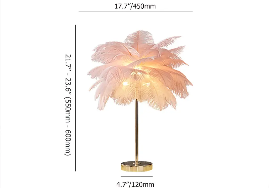 Loftus Art Deco Pink Feather Gold Table Lamp Unique Lighting