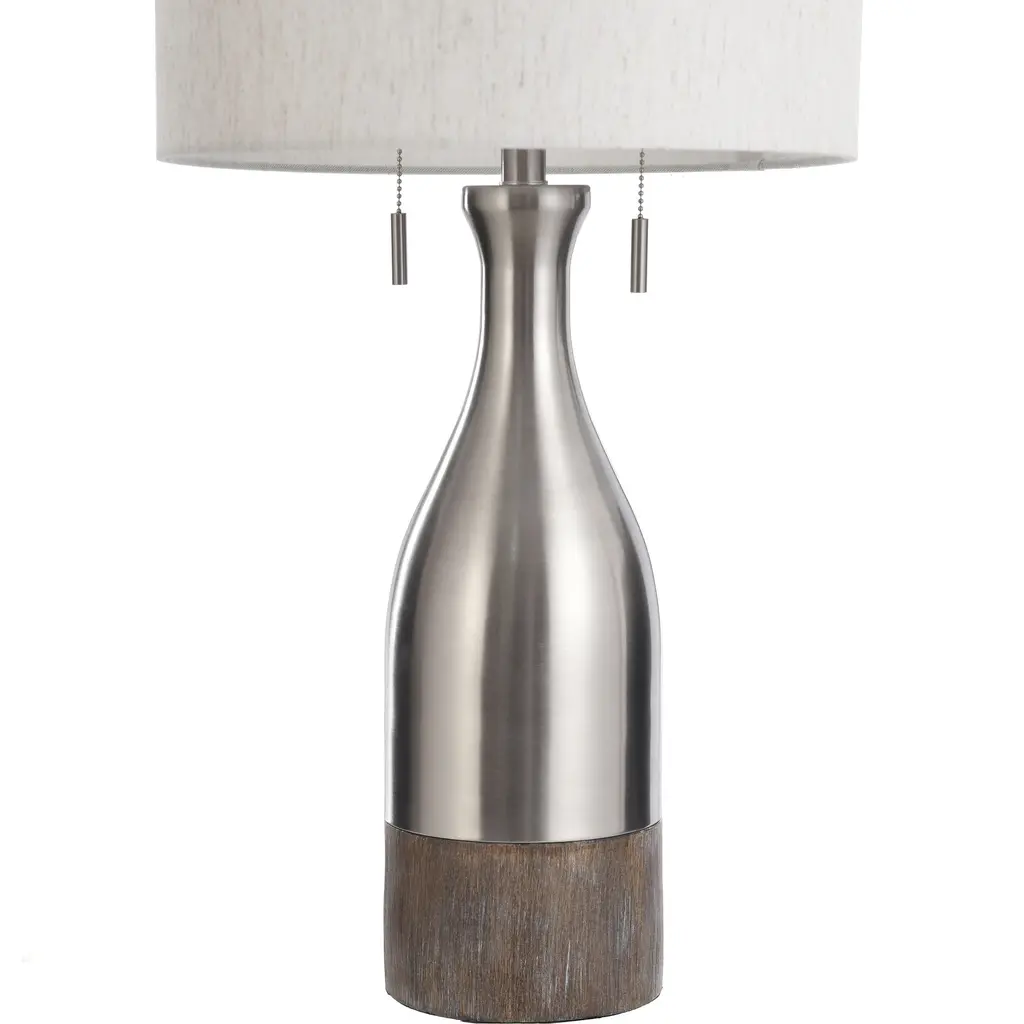 Logan 32 Inch 60.00 Watt Brushed Steel Metal With Molded Faux Wood Base Table Lamp Portable Light