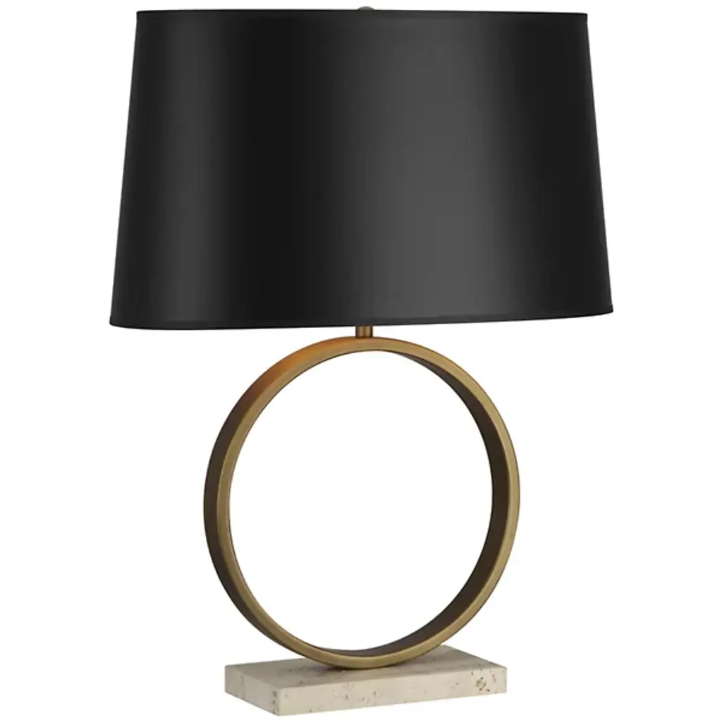 Logan Contemporary Table LampFeaturesNumber of bulb: 1Bulb type: B10.5Max wattage: 60WVoltage: 120VSocket: Candelabra E12Switch: 3-Way RotarySwitch location: Line SwitchFinish: Aged Brass with Travertine Stone Base RHBNShade: Black Painted Opaque Parchment Shade with Copper Foil LiningCord color: SilverUL listed: DryDimensionsShade dimensions: 10 inches top x 11 inches bottom x 7.5 inches down sideBase dimensions: 1 inch height x 7 inches width x 4 inches depth