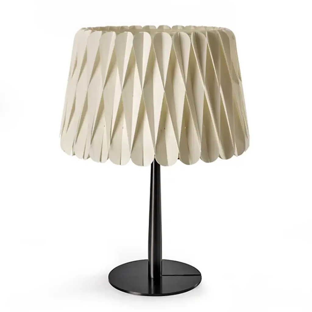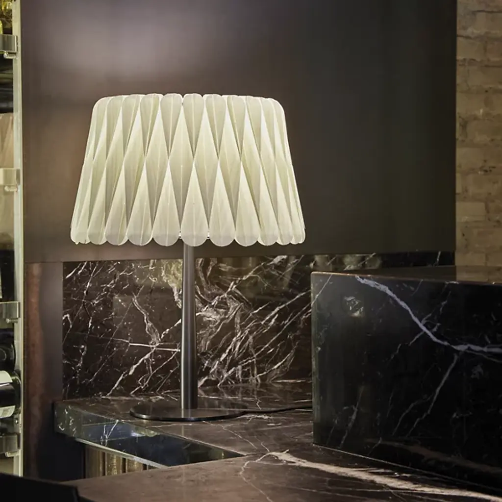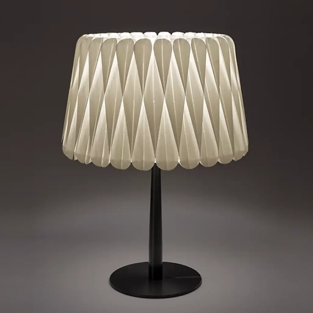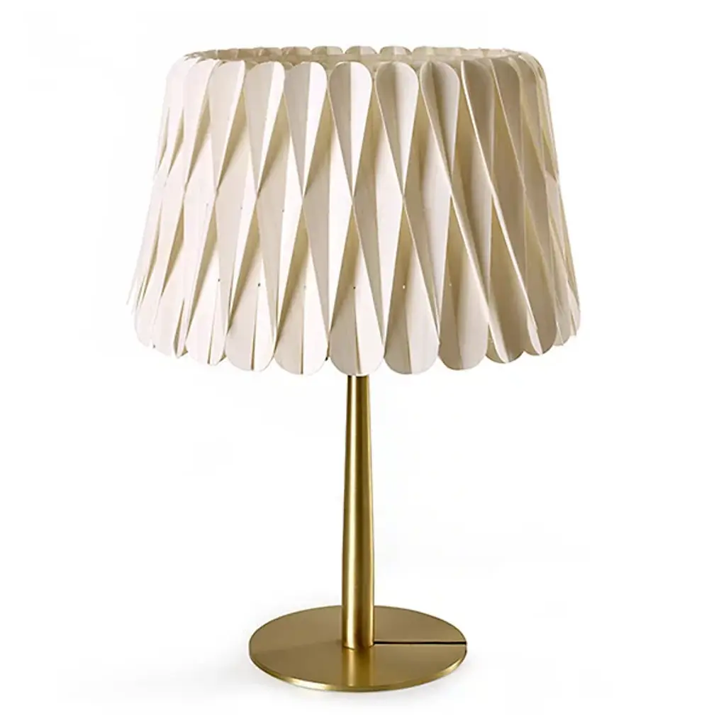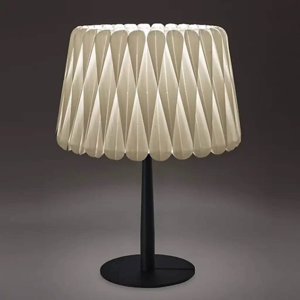 A light and lacy look, made out of wood. The delicate intricacies that can be achieved with wood veneer are displayed to perfection in the design of the Lola Table Lamp by LZF. Thin slices of Wood Veneer are woven together in such a way that the shade looks like it's made out of folded paper or fabric. (Clear plastic rings provide support and strength at the top and bottom of the shade.) The detailed pattern that results is especially eye-catching when the lamp is illuminated. The Metal base is simple, so as not to distract from the sexy shade.