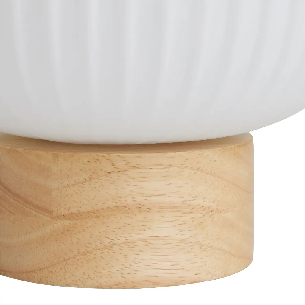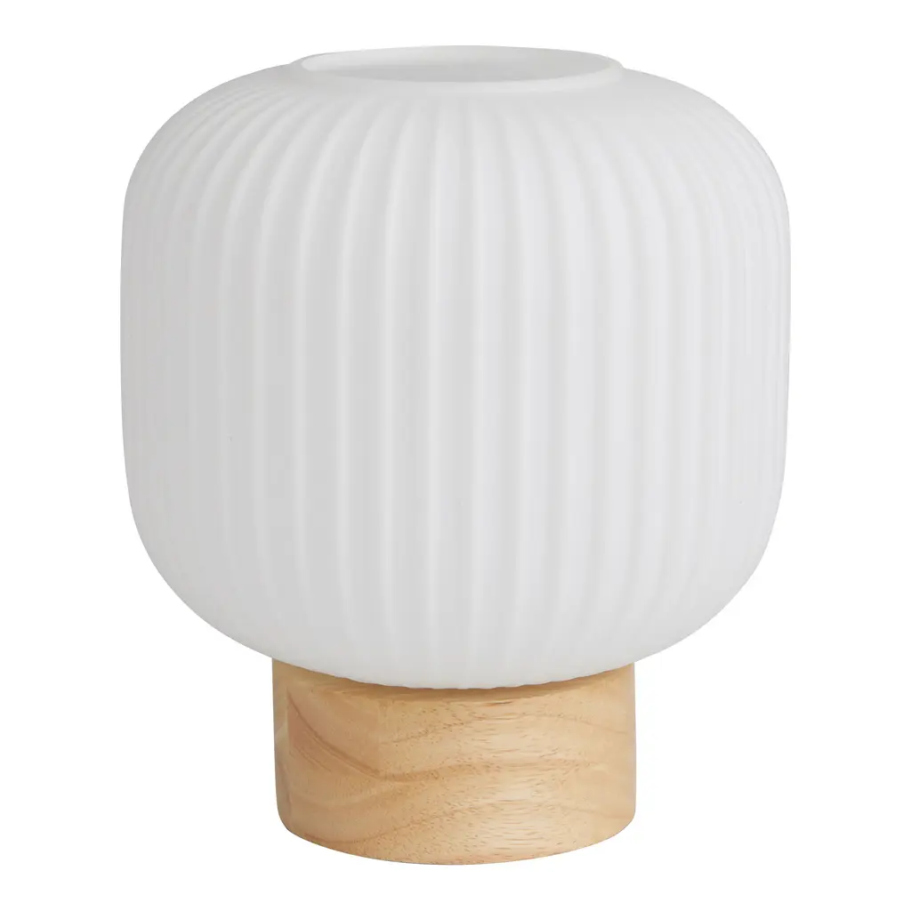 Lola White Glass And Natural Wood Ribbed Accent Lamp