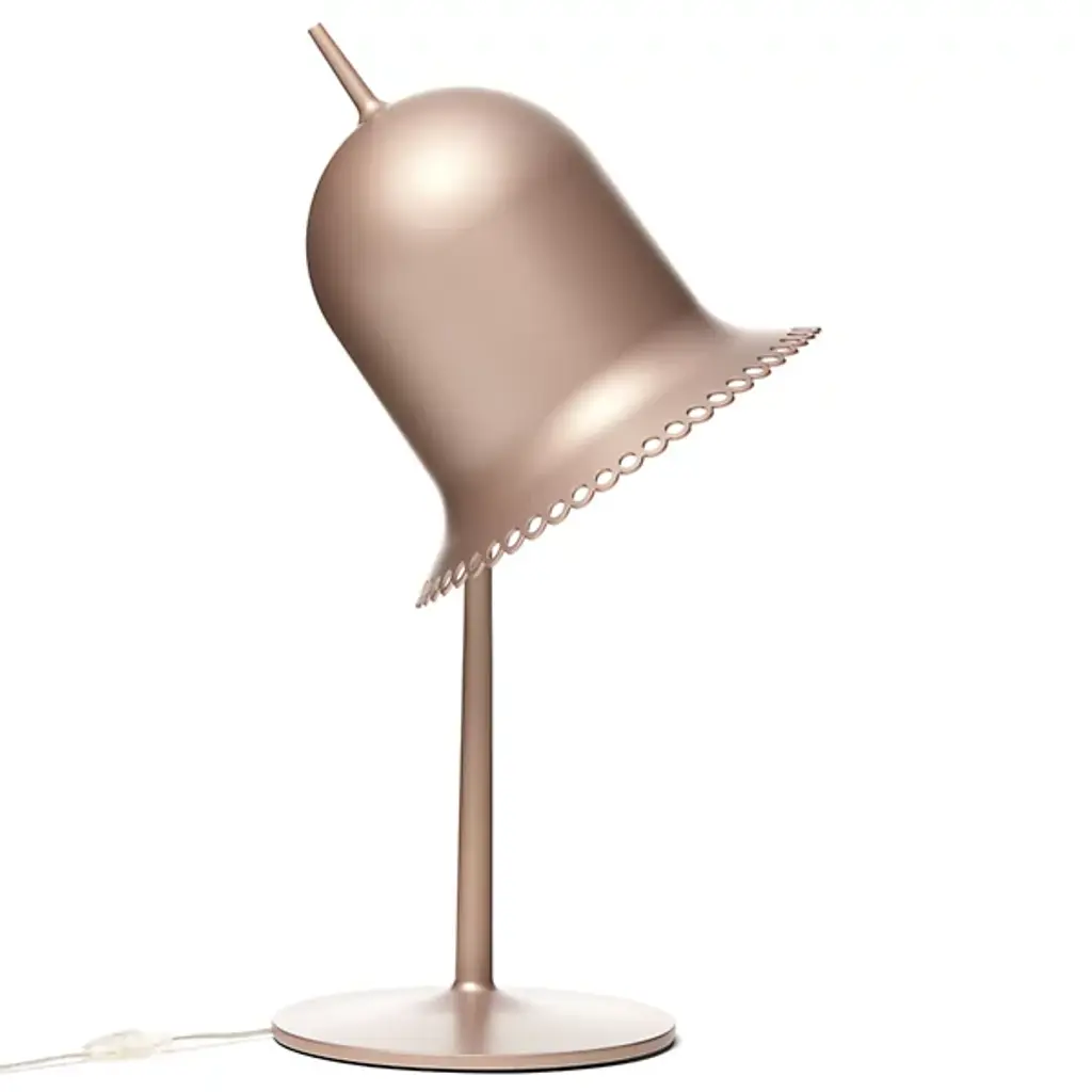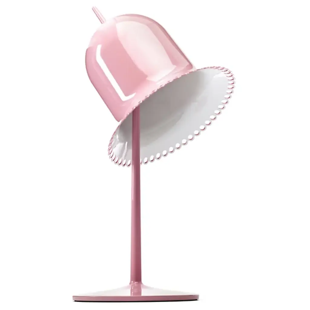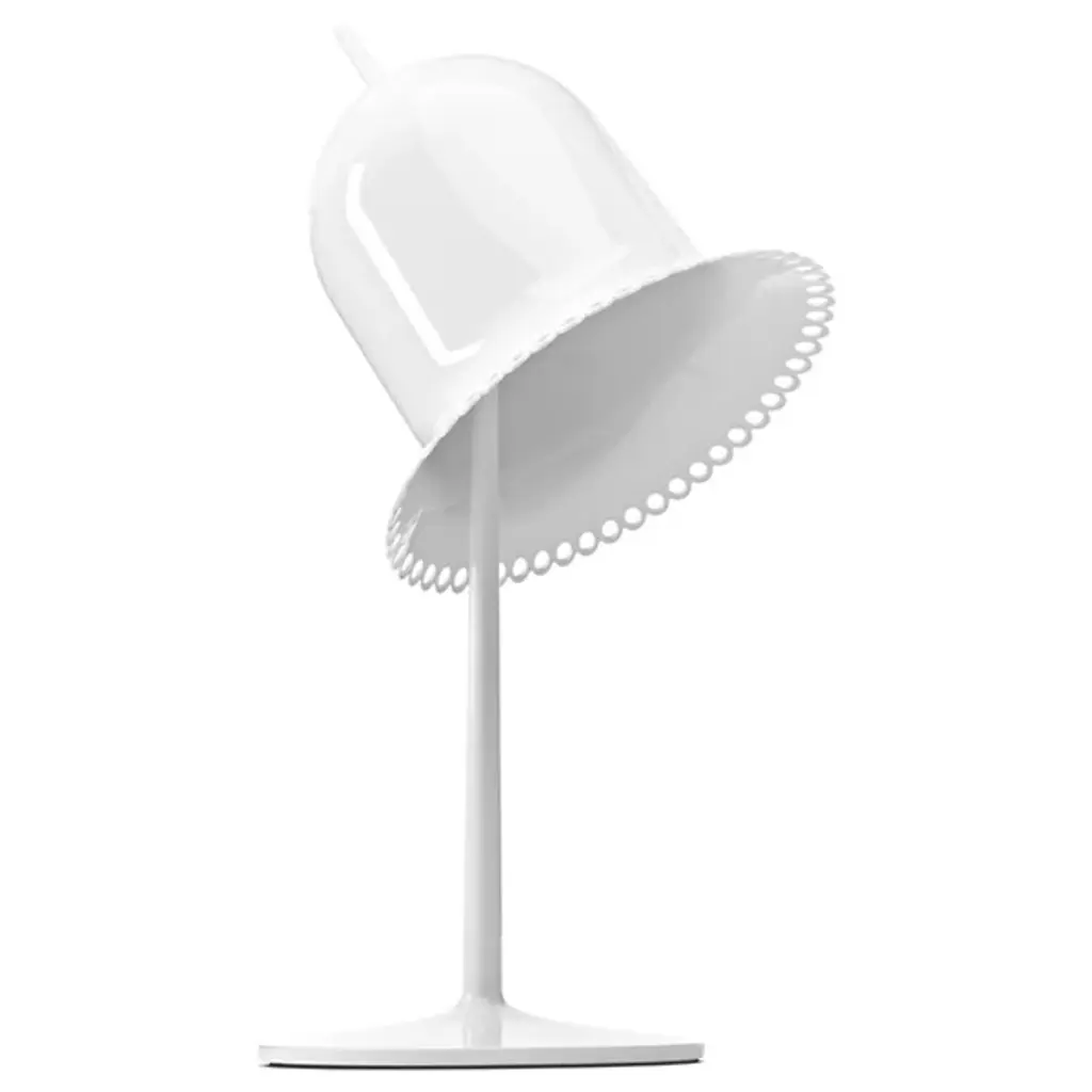 Lolita is here to play with your emotions, states designer Nika Zupanc regarding the enticingly sweet Moooi Lolita Table Lamp. "My imagination chases female archetypes intentionally. Frivolous, even naive objects are my favorite victims." Inspired by Nabokov's controversial novel, perhaps? Features an injection-molded ABS shade that tilts 45 degrees. Its White interior shade reflects a bright yellow when turned on.
