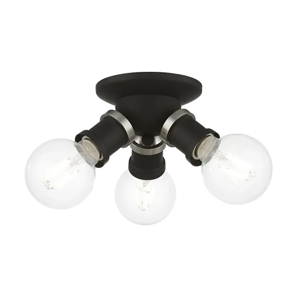The Lolly Flushmount from Mitzi presents an open retro-modern character ideal for small ceilings and compact spaces. An excellent installation ideal over a gathering space, it uses a circular canopy to retain a rounded hub, extending an array of capsule-shaped sockets around it and extending open lamping below at an array of coordinated angles. The damp-rated lamping blazes out around the fixture in a halo of light, enhancing the fixture with an enchanting, glittering array of reflected warmth.