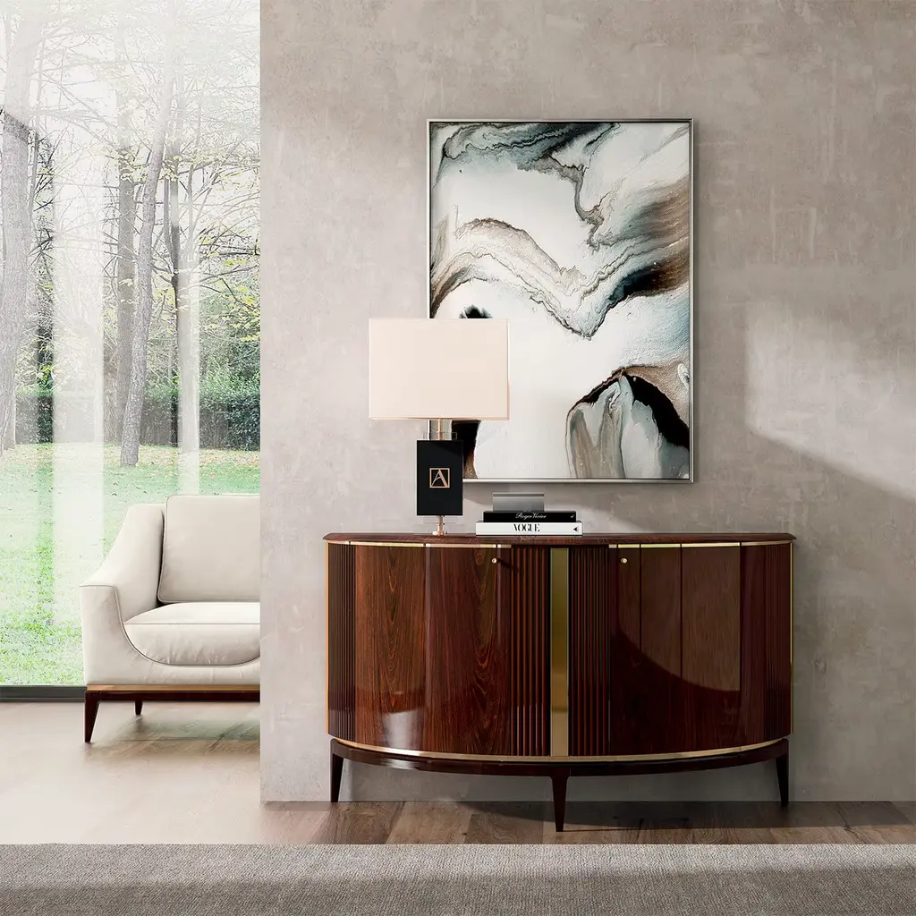 A sophisticated choice for the modern home, this table lamp is a versatile complement to an entryway, bedroom or living room. Its metal structure is adorned with a stunning rectangular element in black crystal with the letter A chiseled and decorated in brass. This elegant combination of traditional materials and contemporary aesthetic will be eye-catching and timeless. A lampshade in white fabric completes the piece.