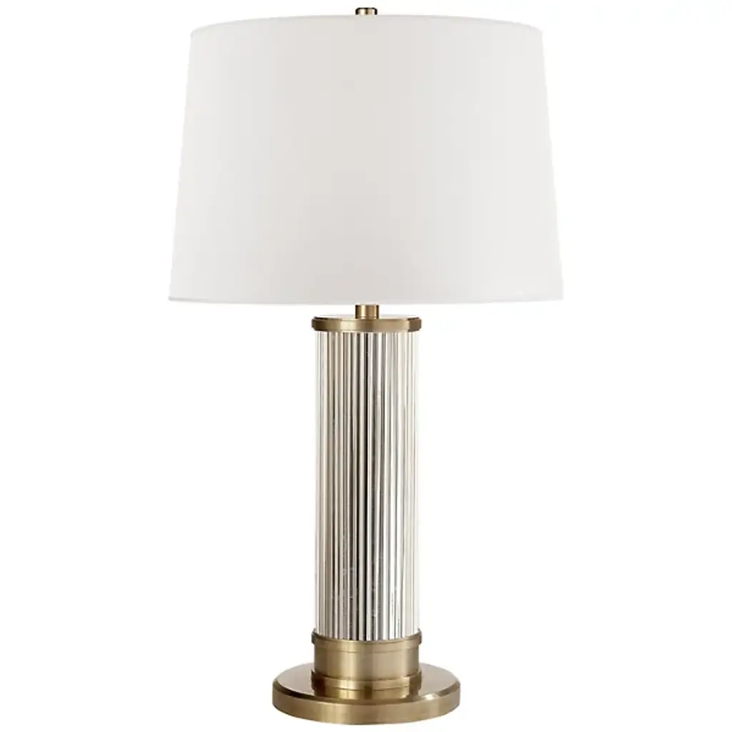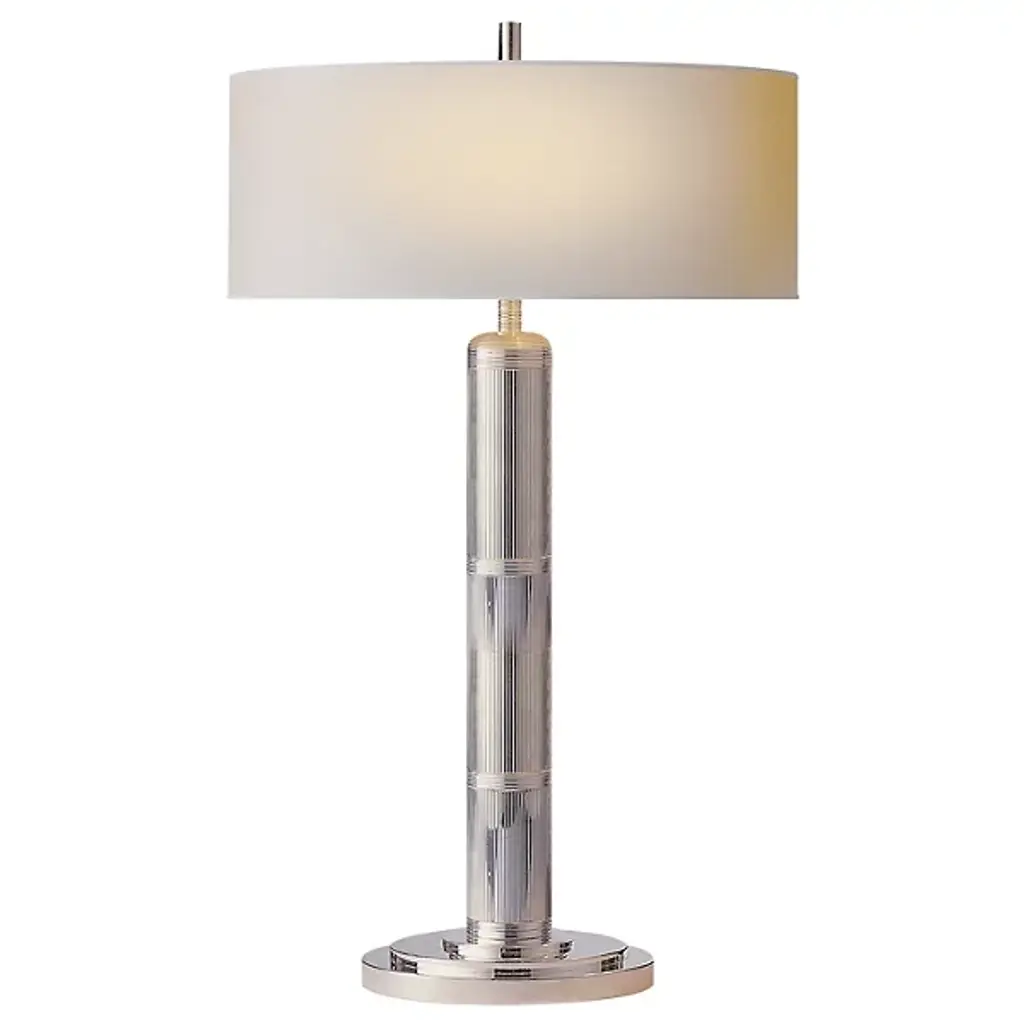 Visual Comfort Signature, formerly known as Visual Comfort, brand presents the classic Longacre Tall Table Lamp, designed by influential creative Thomas O’Brien of New York. The sleek, beveled base connects to a rounded and ribbed stem that stretches regally upward to disappear into a cylindrical natural paper shade. It has wide openings that allow generous light to pour out in either direction, in addition to the pleasant diffusing quality of the shade itself. The reminiscence of Art Deco gives this practical piece of lighting a luxurious elevation of style. It’s a suitable choice for many interiors across the spectrum of work and play.
