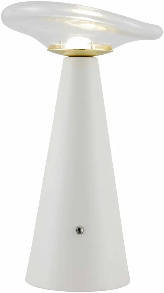 Collection: Longjumeau Colors: White, Clear Material: Body: Iron / Shade (Outside): Glass / Shade (Inside): Glass Styles: Traditional Made In: China Lighting Type: Accent Table Lighting Shade Material: Glass Shade Color: Clear Cord Length: 0' Switch Type: 3-Way Number of Bulbs: 1 Socket Type: LED Bulb Wattage: 7W