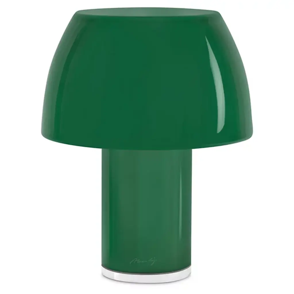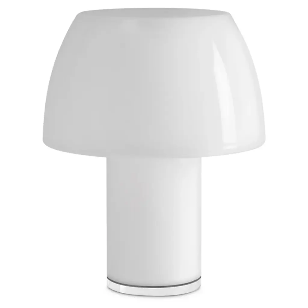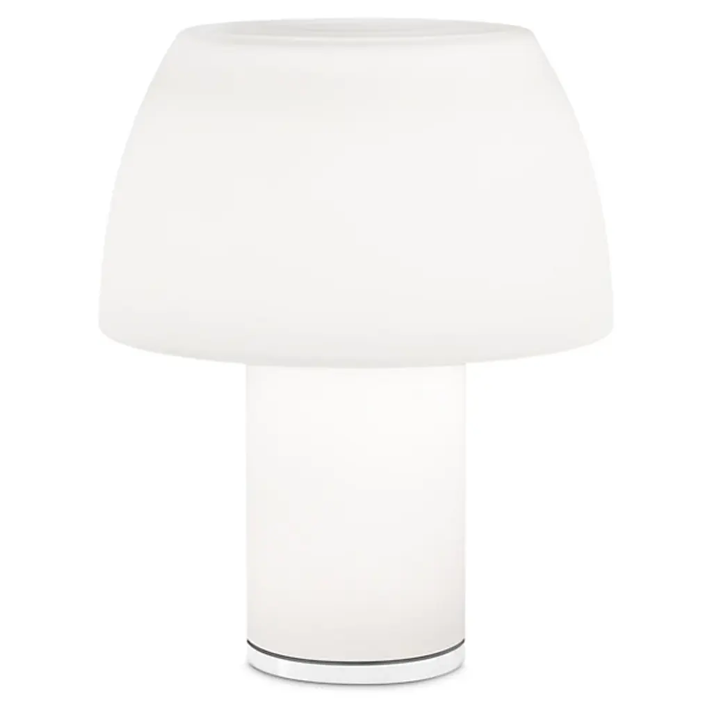 The Lorosae LED Table Lamp from Nemo matches award-winning design with standout functionality in a compact, portable form. It’s a portable, rechargeable version of a design created by Álvaro Siza for his 1999 exhibition at the Basilica Palladiana in Vicenza; this reimagined version brings his vision to the tabletop. Its slim cylindrical base is capped by a flared, colored glass shade, and allows the lamp to cast a bright wash of light while the shade glows softly from within. A touch-sensitive dimmer atop the shade controls the energy-efficient LED, adding convenience to its elegant, retro- inspired silhouette.