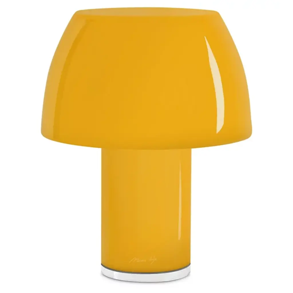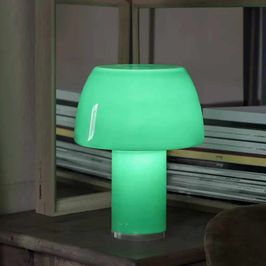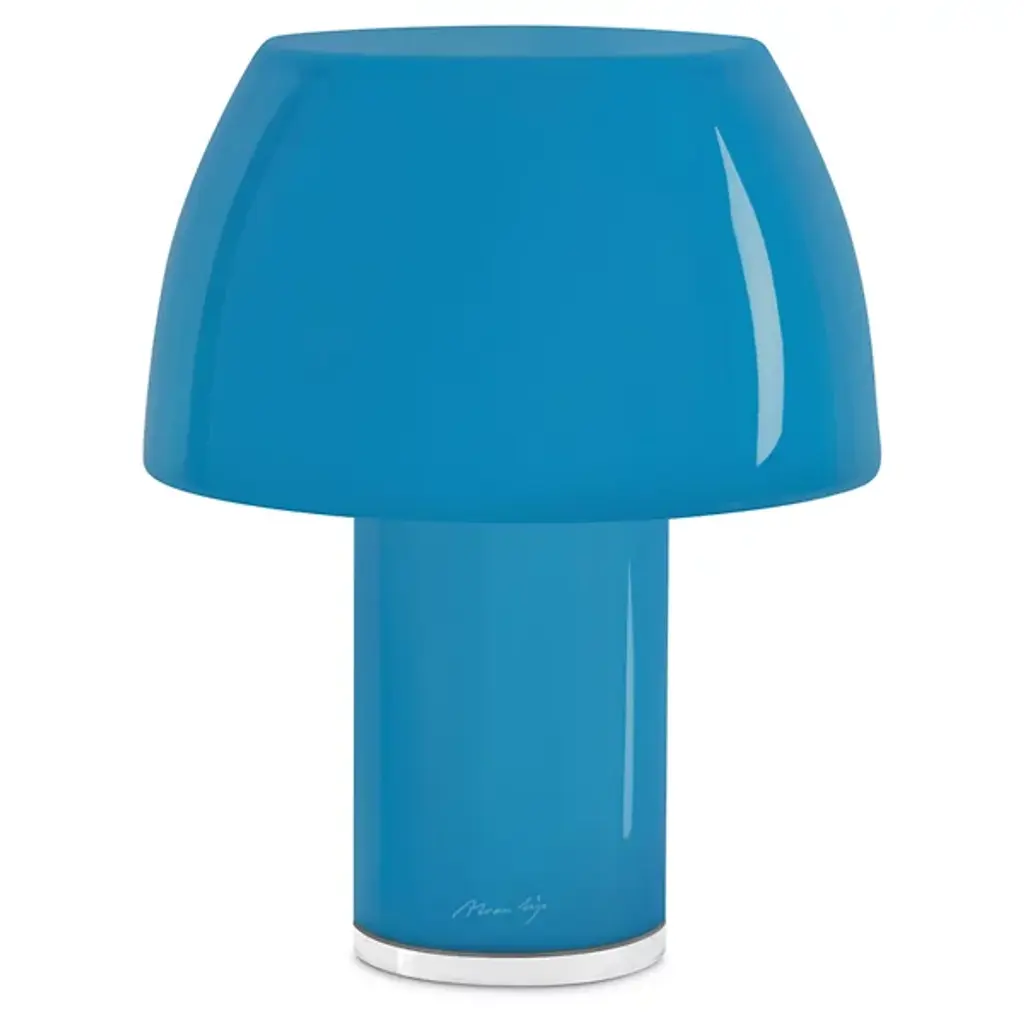 The Lorosae LED Table Lamp from Nemo matches award-winning design with standout functionality in a compact, portable form. It’s a portable, rechargeable version of a design created by Álvaro Siza for his 1999 exhibition at the Basilica Palladiana in Vicenza; this reimagined version brings his vision to the tabletop. Its slim cylindrical base is capped by a flared, colored glass shade, and allows the lamp to cast a bright wash of light while the shade glows softly from within. A touch-sensitive dimmer atop the shade controls the energy-efficient LED, adding convenience to its elegant, retro- inspired silhouette.