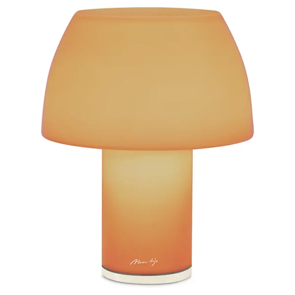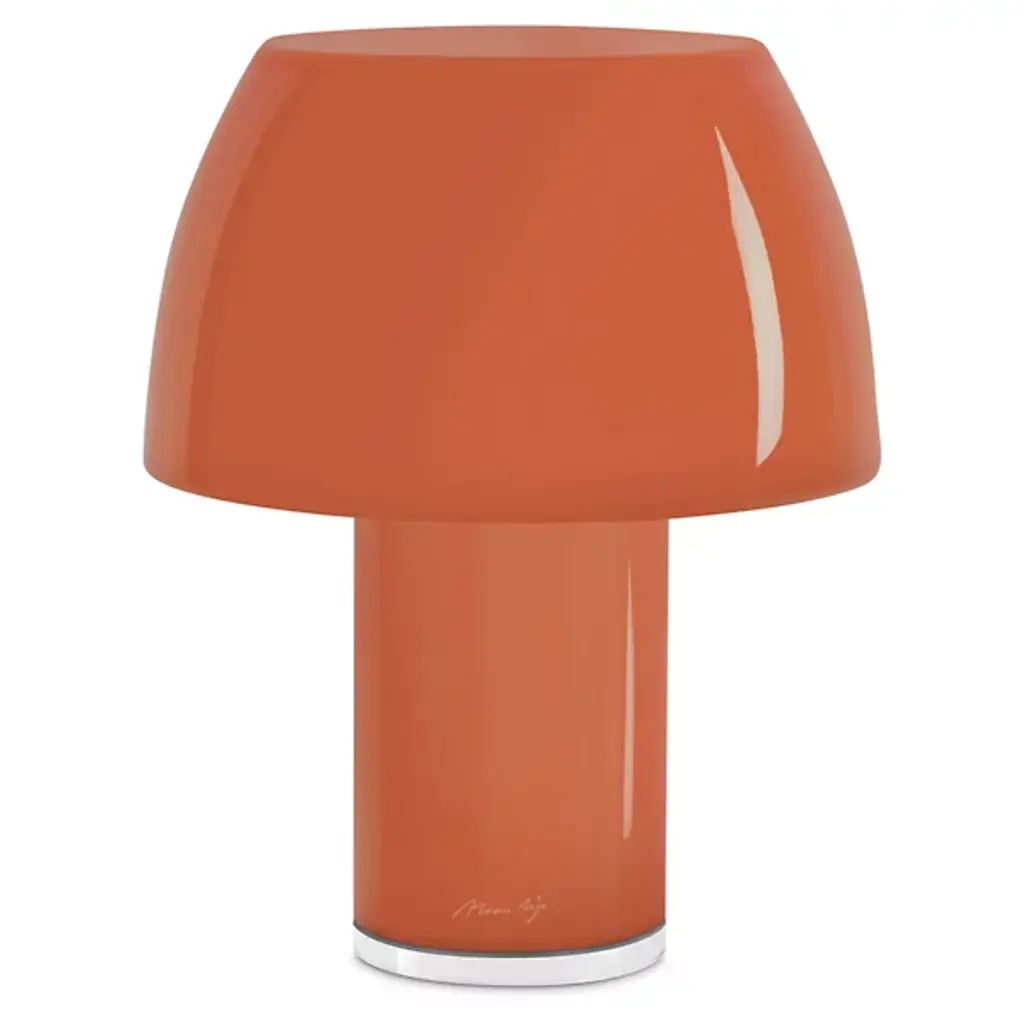 The Lorosae LED Table Lamp from Nemo matches award-winning design with standout functionality in a compact, portable form. It’s a portable, rechargeable version of a design created by Álvaro Siza for his 1999 exhibition at the Basilica Palladiana in Vicenza; this reimagined version brings his vision to the tabletop. Its slim cylindrical base is capped by a flared, colored glass shade, and allows the lamp to cast a bright wash of light while the shade glows softly from within. A touch-sensitive dimmer atop the shade controls the energy-efficient LED, adding convenience to its elegant, retro- inspired silhouette.