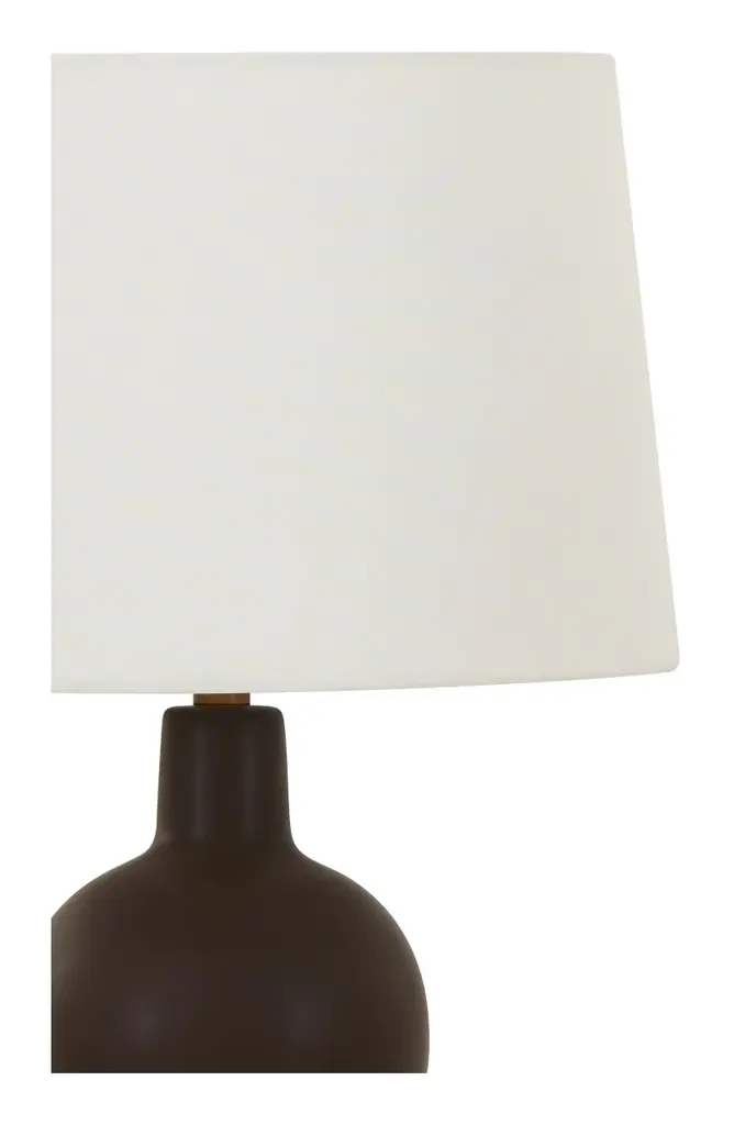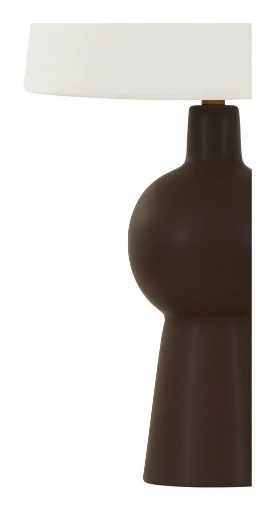 Brown is having a moment — and we’re embracing it with our effortlessly chic Loudon Lamp. A study in neutrals, this table lamp is crafted from ceramic into a simple, sculptural shape and coated with a rich, chocolatey matte glaze. We’ve finished it off with a classic white linen drum shade, which only adds to its elegant yet easy-going feel. Perfect for adding a layer of warmth to modern and eclectic spaces alike, Loudon would really shine on a cozy living room side table or as a pair on the nightstands in a calm bedroom. •ceramic •matte chocolate brown glaze•white linen drum shade•3-way cast turn knob•clear cord •requires 100W max/type A bulb Dimensions•16" diameter x 29"H•base: 7.25" diameter x 16.25"H•shade: 16" diameter x 11"H