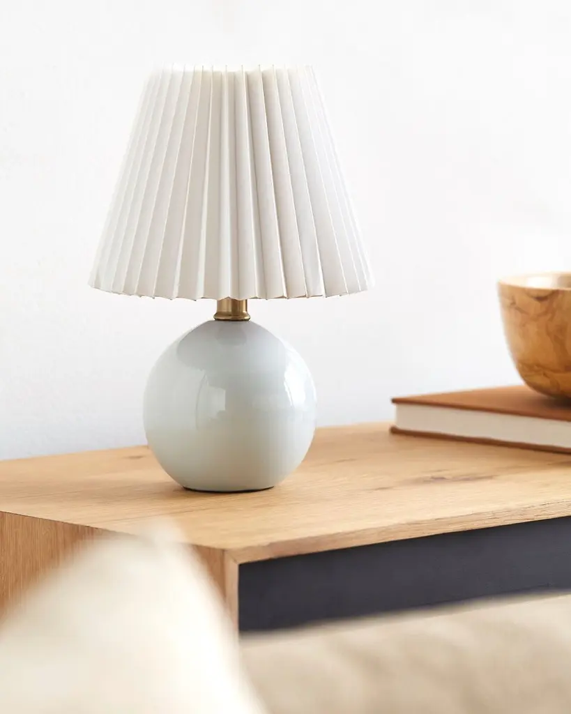 Add a touch of modern minimalism to your living space with this accent table lamp. This chic lamp features a sleek ceramic body coupled with a linen outer shade and an inner polystyrene lining that emits just the right amount of light for any setting. Standing at 12 inches tall, it's designed to fit perfectly on any side table, desk or nightstand. The clean lines and minimalist style create an understated elegance that can seamlessly blend into any decor style. Plus, maintaining this lamp is as simple as wiping it clean with a dry cloth•no need for harsh cleaners. Illuminate your space in style with this accent table lamp.
