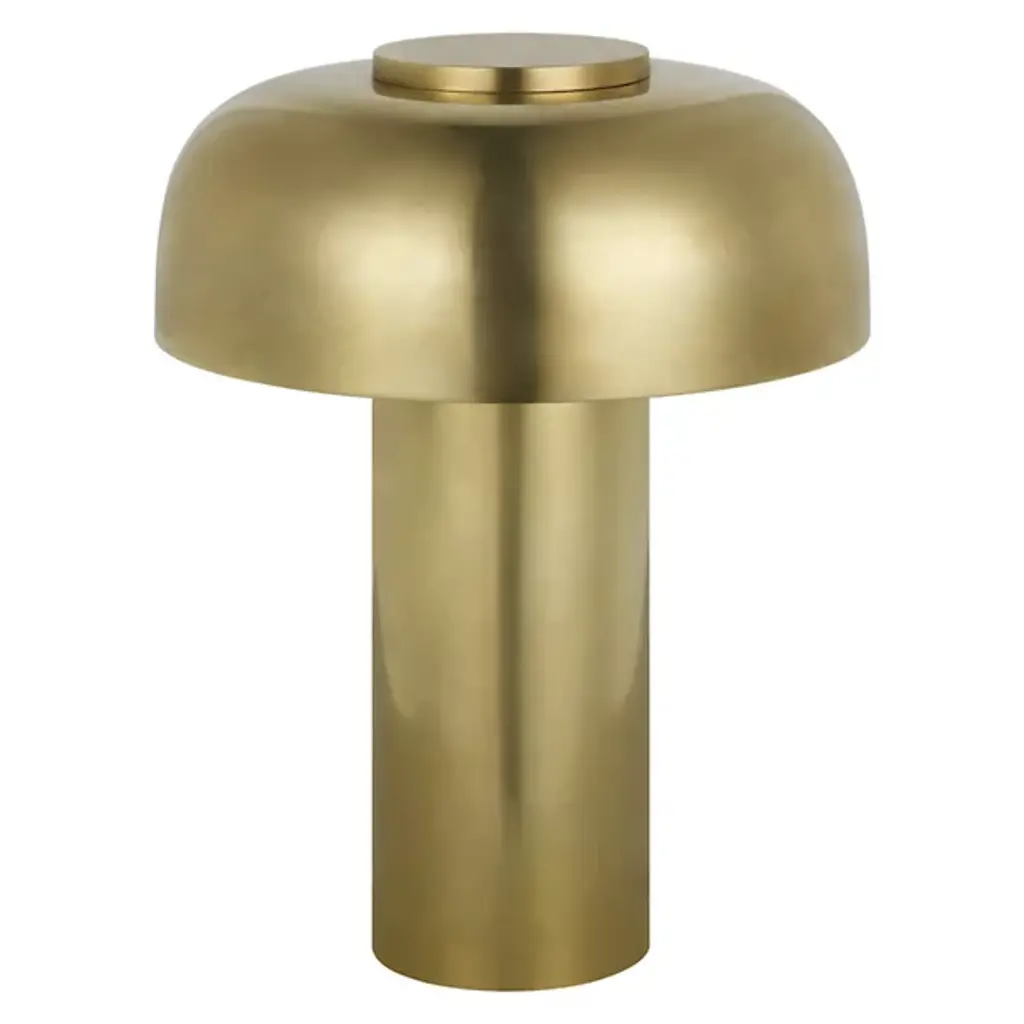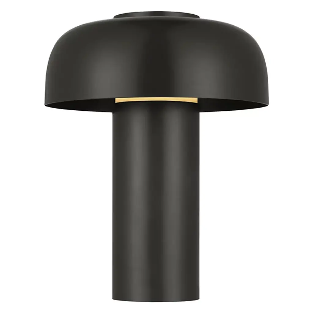 The Louver LED Rechargeable Table Lamp from Visual Comfort Modern, designed by Kelly Wearstler, blends modern elegance with innovative design. Its sleek metal columns are accented by subtle bands of light, creating the illusion of metal passing through the shade. Crafted with precision, this sophisticated lamp offers both style and functionality. Featuring a 3-step touch dimmer for adjustable ambiance, it recharges via USB-C in five hours, providing 12-14 hours of cordless illumination. A wall charger is included for added convenience.