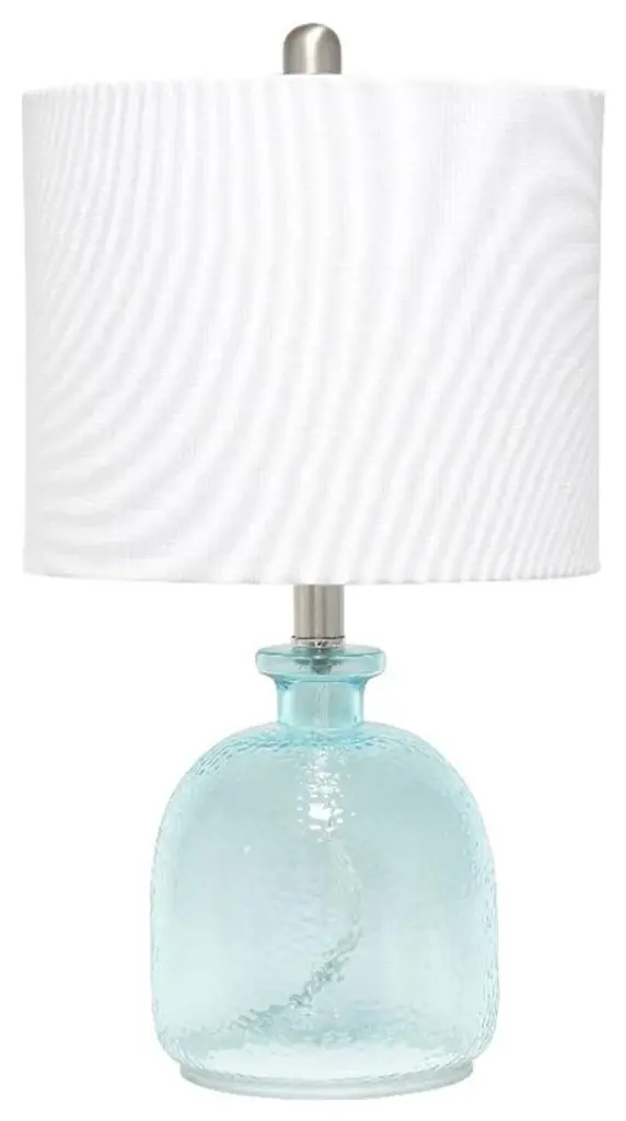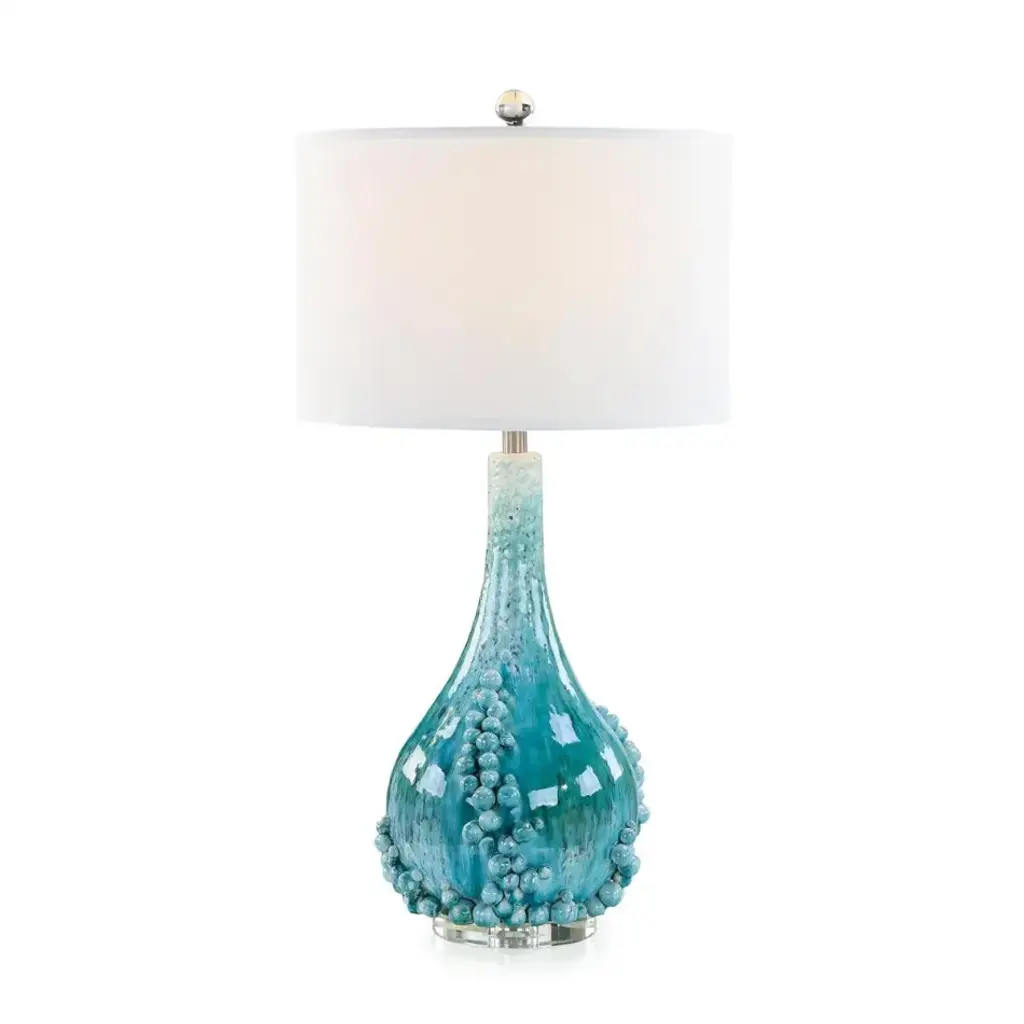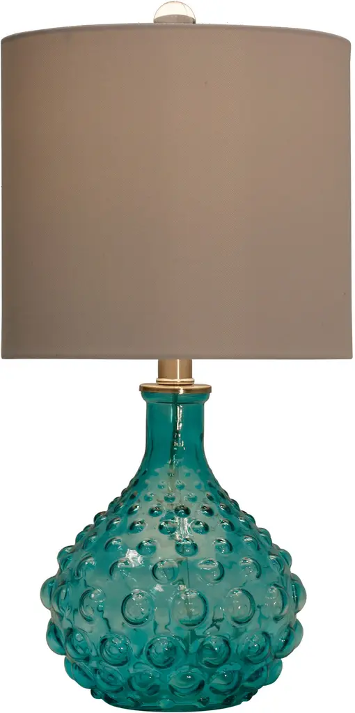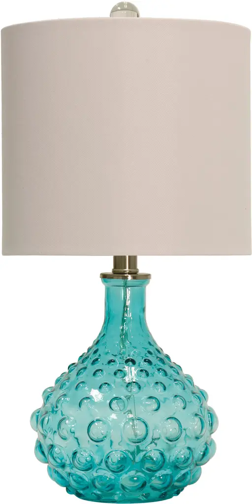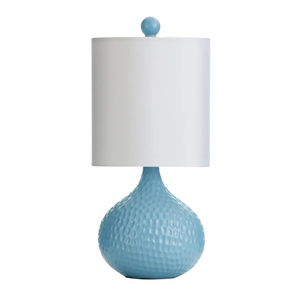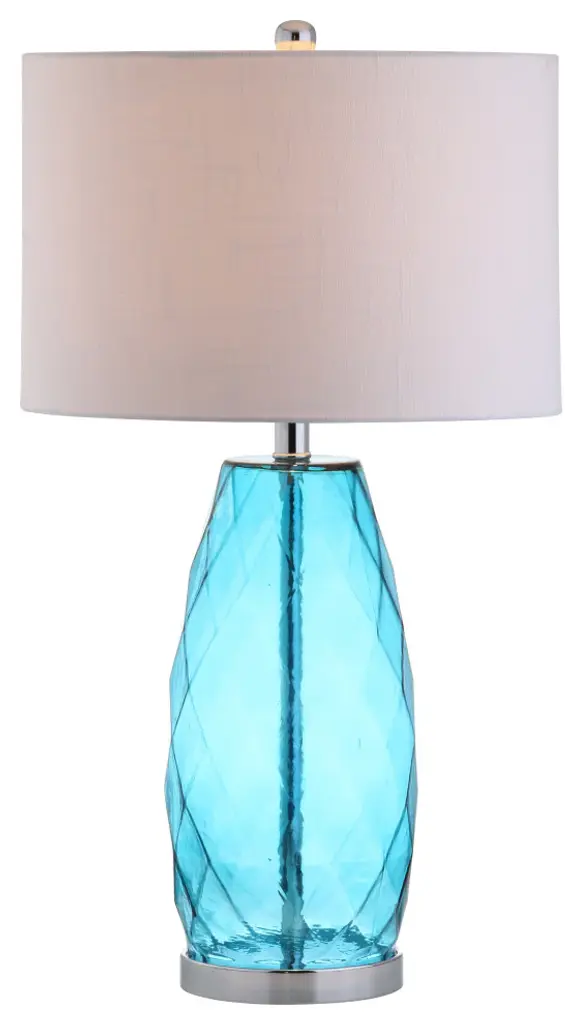 With its singular appearance and blue color, this table lamp can accentuate a bedroom, office, hallway, living room, or dining room.