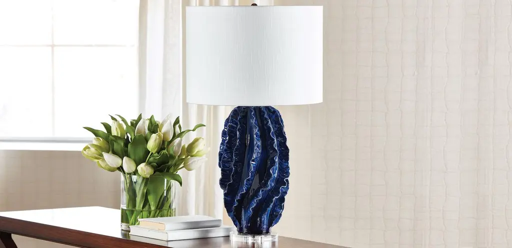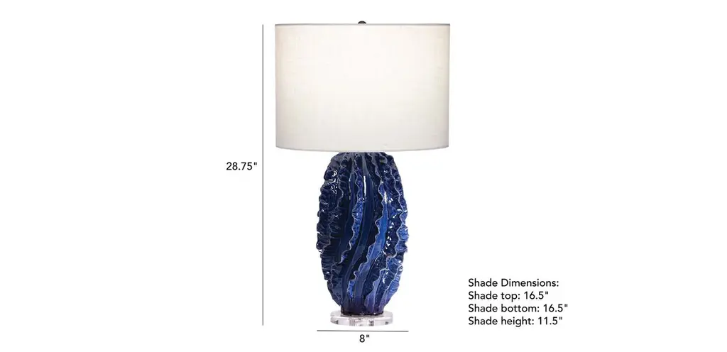 This intricately detailed, ceramic table lamp has a unique and eye-catching style. Like a snowflake, no two of these handcrafted ceramic works are the same. Each piece is coated in a glossy glaze, for a dramatic statement of color. Artisans finish your table lamp with a clear acrylic base, and its crowned with a white linen shade. Lucca casts a warm light and basks in its own glory.