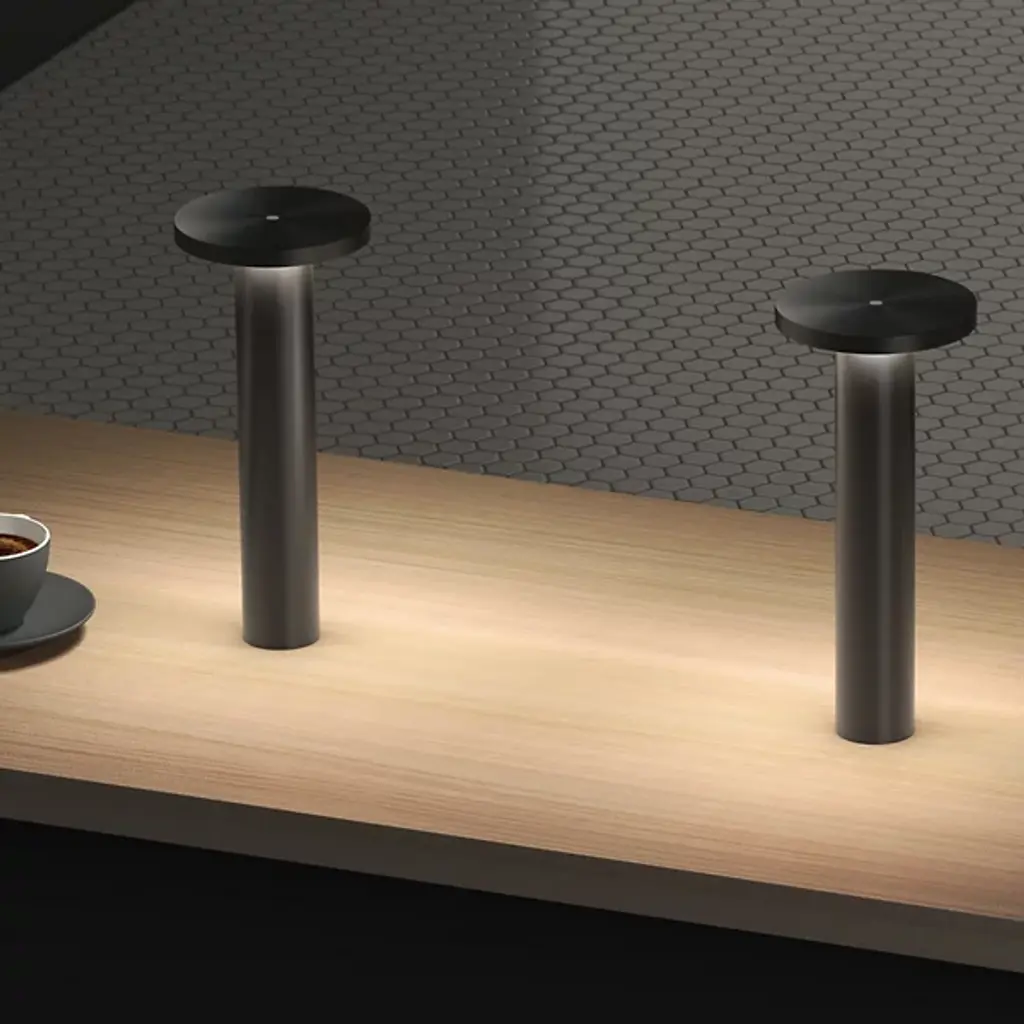 Stylish, memorable, lucidly simple. The Luci Portable LED Table Lamp from Pablo Designs offers a clever contemporary character with go-anywhere verve. Simple in form and with a durable aluminum form in a stylish peg shape, rising from a cylinder and seating a slender disc-shaped housing with an optical switch to control its LED lamping. The smooth metal gleams with reflected light, while the dimmable lamping blazes out effortlessly for hours, able to rest on a side table, shelf, or workspace, illuminating its surroundings with freestanding aplomb.