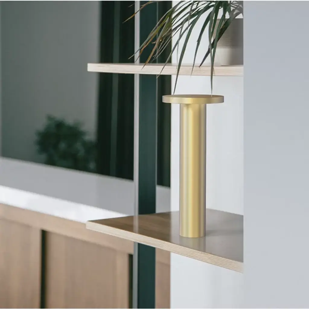 Stylish, memorable, lucidly simple. The Luci Portable LED Table Lamp from Pablo Designs offers a clever contemporary character with go-anywhere verve. Simple in form and with a durable aluminum form in a stylish peg shape, rising from a cylinder and seating a slender disc-shaped housing with an optical switch to control its LED lamping. The smooth metal gleams with reflected light, while the dimmable lamping blazes out effortlessly for hours, able to rest on a side table, shelf, or workspace, illuminating its surroundings with freestanding aplomb.