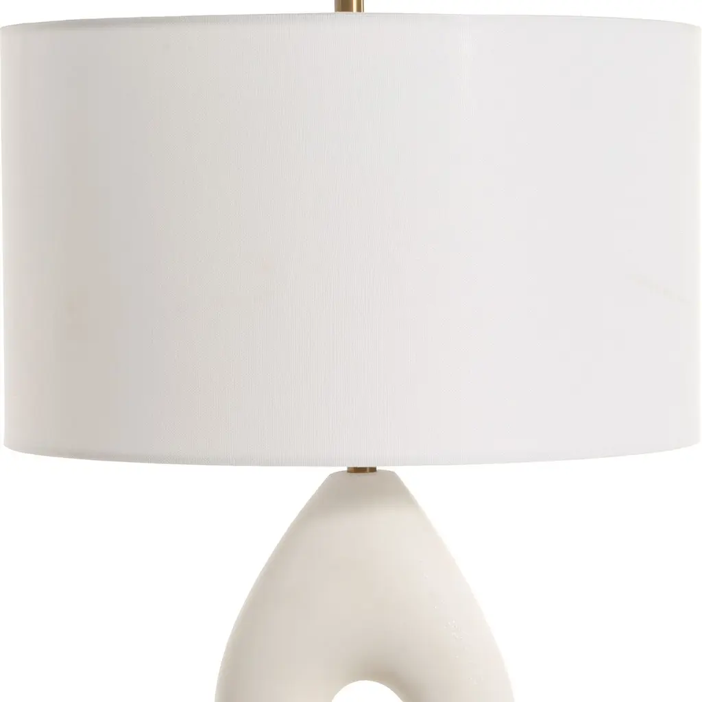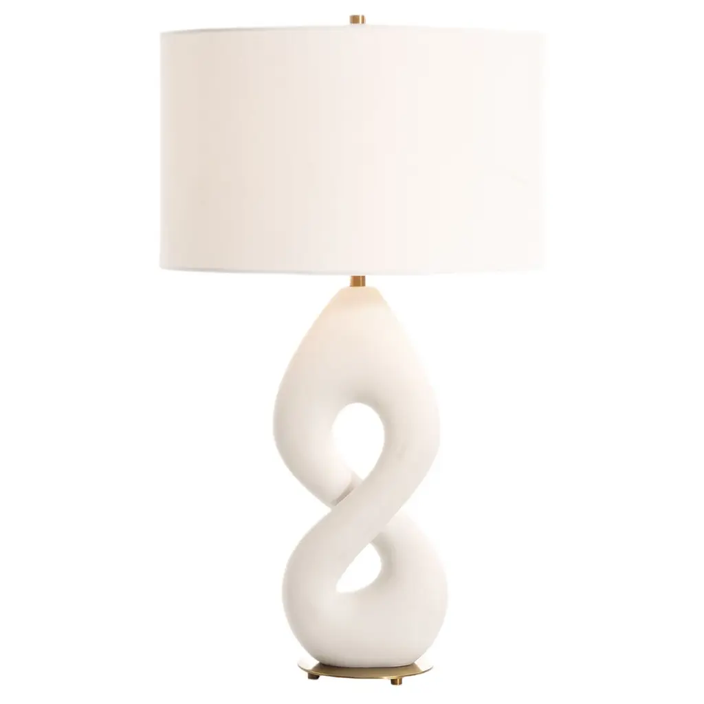 The Luciano Table Lamp is a stunning piece that seamlessly blends modern aesthetics with timeless elegance. Its distinctive Melina shape brings a contemporary twist to classic design elements. Crafted from rich ivory man-made stone, it beautifully mimics the luxurious appearance of Thassos marble. The lamp is further enhanced by a sophisticated plated antique brass foot and coordinating hardware, adding a touch of opulence. Topped with a hardback drum shade in crisp white linen, this lamp is a perfect addition to any space, offering both style and functionality.