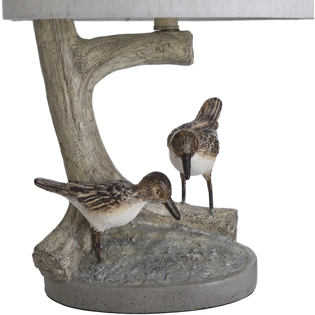 Iuka Farmhouse Birds On A Limb Table Lamp - Nested Tone Finish - Heathered Oatmeal Fabric Shade