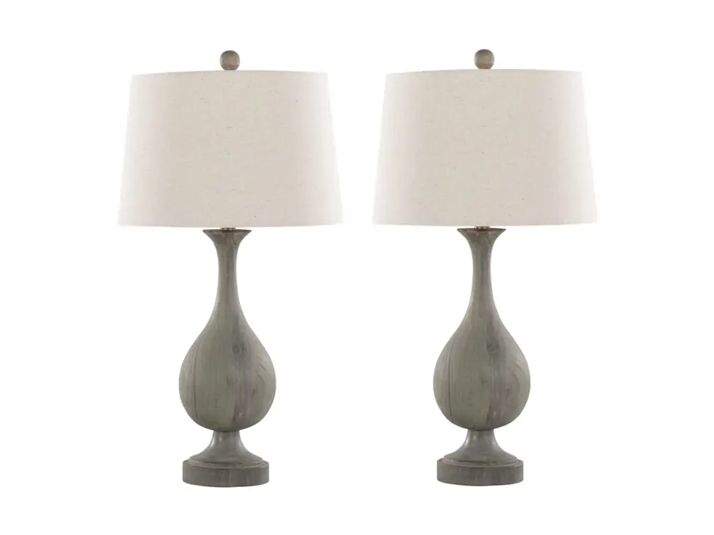 Add a rustic design element to your space with the Cipolla Table Lamp from Grandview Gallery by LumiSource. This polyresin lamp features a tapered linen drum shade and faux wood design and showcases a teardrop body with an hourglass stem. Whether resting on your nightstands, set on side tables in the den, or tucked into your favorite reading nook, this set of lamps adds a touch of warmth to any space.
