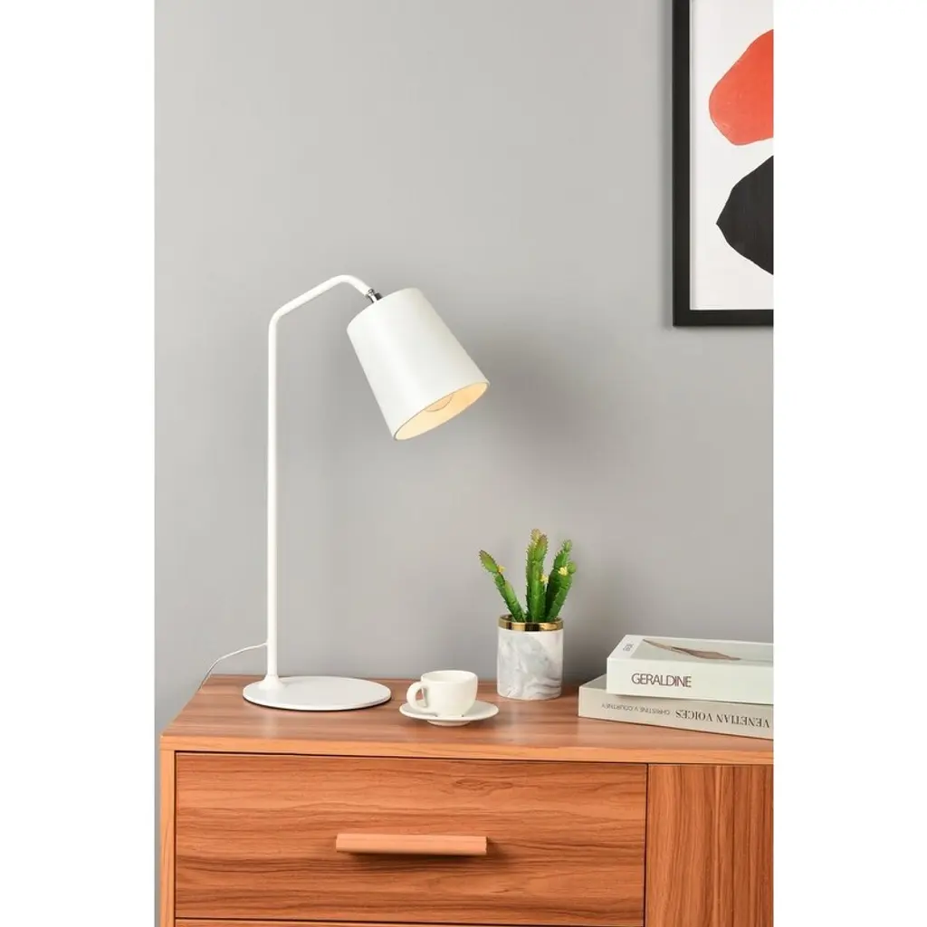 The Leroy Collection table lamp will fit right into your room. The bell shaped shade creates a simple but sleek design that is stylish and useful. Available in black, white, red, or brass finish this is a table necessity. This product requires one E26 socket. Light bulbs not included. • modern desk lamp with a sleek cyclinder metal shade • comes with an eight foot long power cord • illuminated by 1 E26 base light bulb; bulbs are not included • a convenient rocker switch located on the power cord • offered in a black, red, brass, or white finish • lighting is compatiable with LED bulbs • assembly is not required