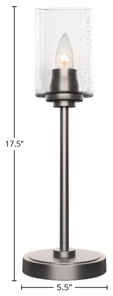 Revamp your space with the Luna 1-Light Table Lamp. Installation is a breeze - simply connect it to a 120 volt power supply and enjoy. This product is designed to be energy-efficient and LED compatible, ensuring convenience and cost savings. Versatile and suitable for everyday use, this table lamp is compatible with standard medium base bulbs. Maintenance is easy. Simply use a damp cloth and do not use chemical cleaners. With its streamlined plug-in design, this lamp adds a touch of sophistication to any room. The durable glass shade guarantees even light diffusion when in use. Choose from multiple finish, size, and color variations to match your style.Features:• Easy to install and use with 120 volt power supply• Energy-efficient and LED compatible for long-lasting illumination• Versatile lighting options with compatibility for standard medium base bulbs• Easily maintain cleanliness with a damp cloth, do not use chemical cleaners• Seamless integration with plug-in designDimensions:Table Lamp• Shade Width: 4 inches• Requirements:• Bulb Base: E26• Bulb Type: LED Bulb, IncandescentFor over 40 years, Toltec Lighting has been dedicated to creating extraordinary lighting experiences for our customers. Our extensive online catalogue showcases a diverse range of contemporary and timeless collections, offering over 40 glass shade choices to personalize each fixture to your unique taste. Whether you seek traditional, transitional, or contemporary styles, our fixtures effortlessly complement any decor. With an unwavering commitment to quality, value, and exceptional service, we prioritize your satisfaction by ensuring hassle-free transactions. Toltec Lighting stands proudly as a beacon of reliability and brilliance, and we look forward to illuminating your home for years to come.