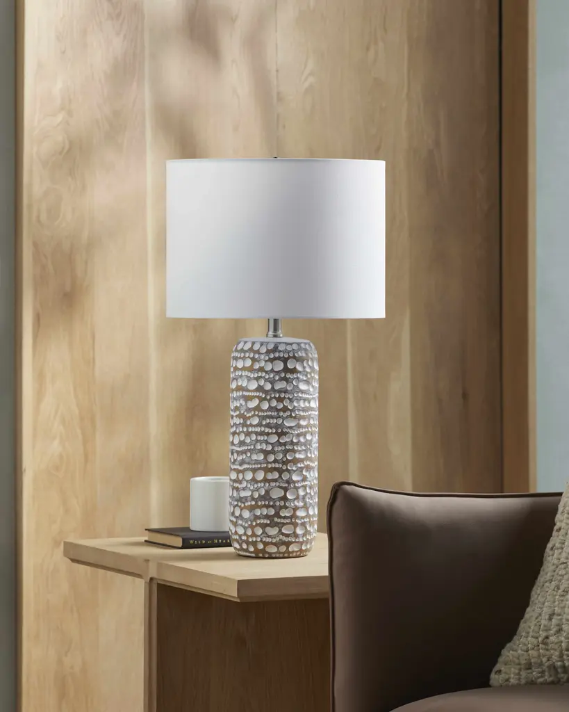 Luna 1-Light Table Lamp, Matte Black/ivory Glaze Seashell