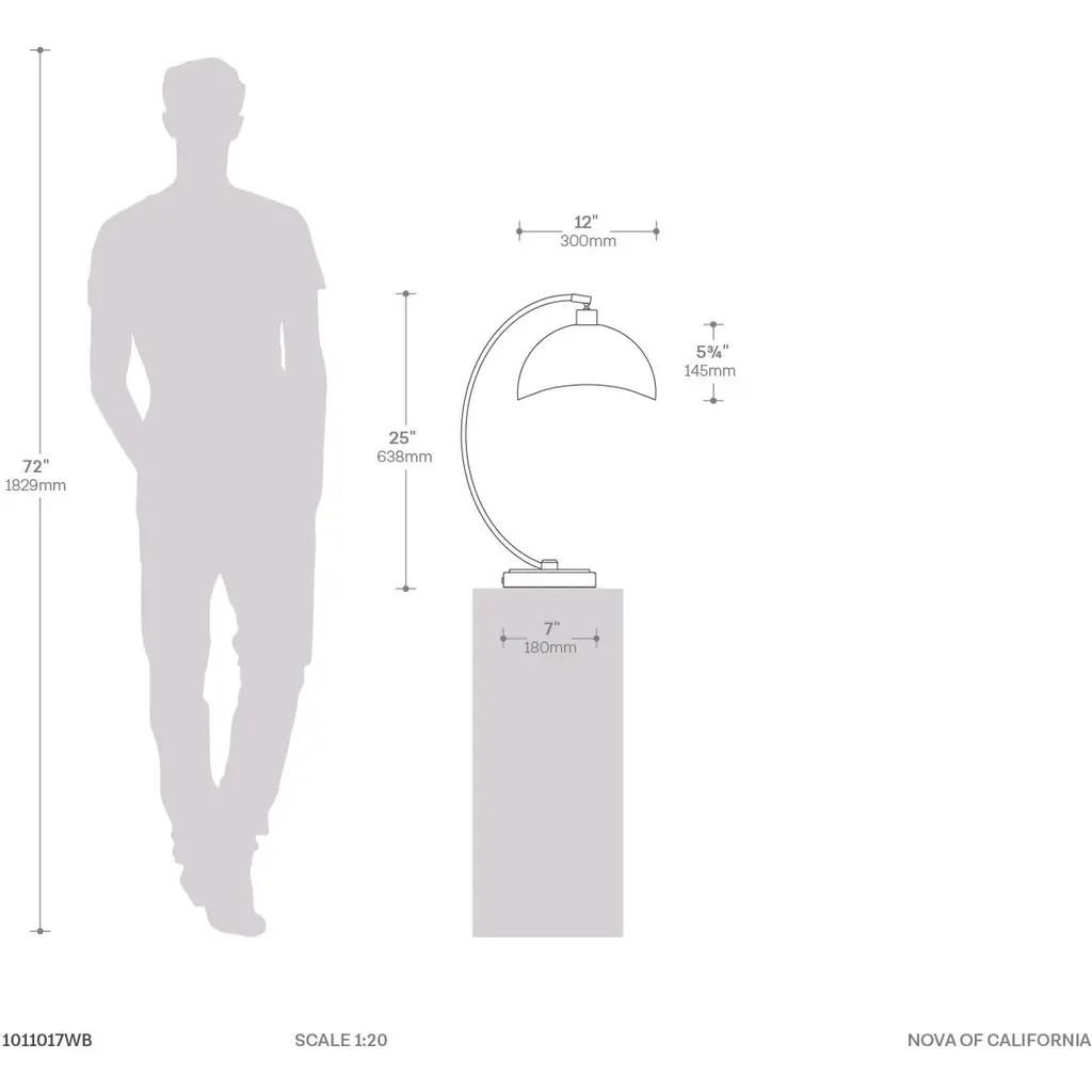 A versatile accent piece: the Nova Luna Bella table lamp measures 26H x 12L x 17W and weighs 9 lbs. This lamp adds wonderful visuals to your living space Durable constructions: this modern table lamp is built from steel construction making it more durable and sturdy. The steel shade brings long lasting elegance Elegant Lighting shade: the shade of the lamp is made of steel with 100W bulb and medium base. The bulb is controlled by dimmer switch with Brushed Nickel and black finished Contemporary design: this modern Nova of California creation is equipped with an in-line step switch and it will amplify the elegance of the modern look of your lovely home Buy with confidence: Nova was founded in 1923 with a commitment to creating original home decor designs that were well crafted with attention to detail and this piece is no exception