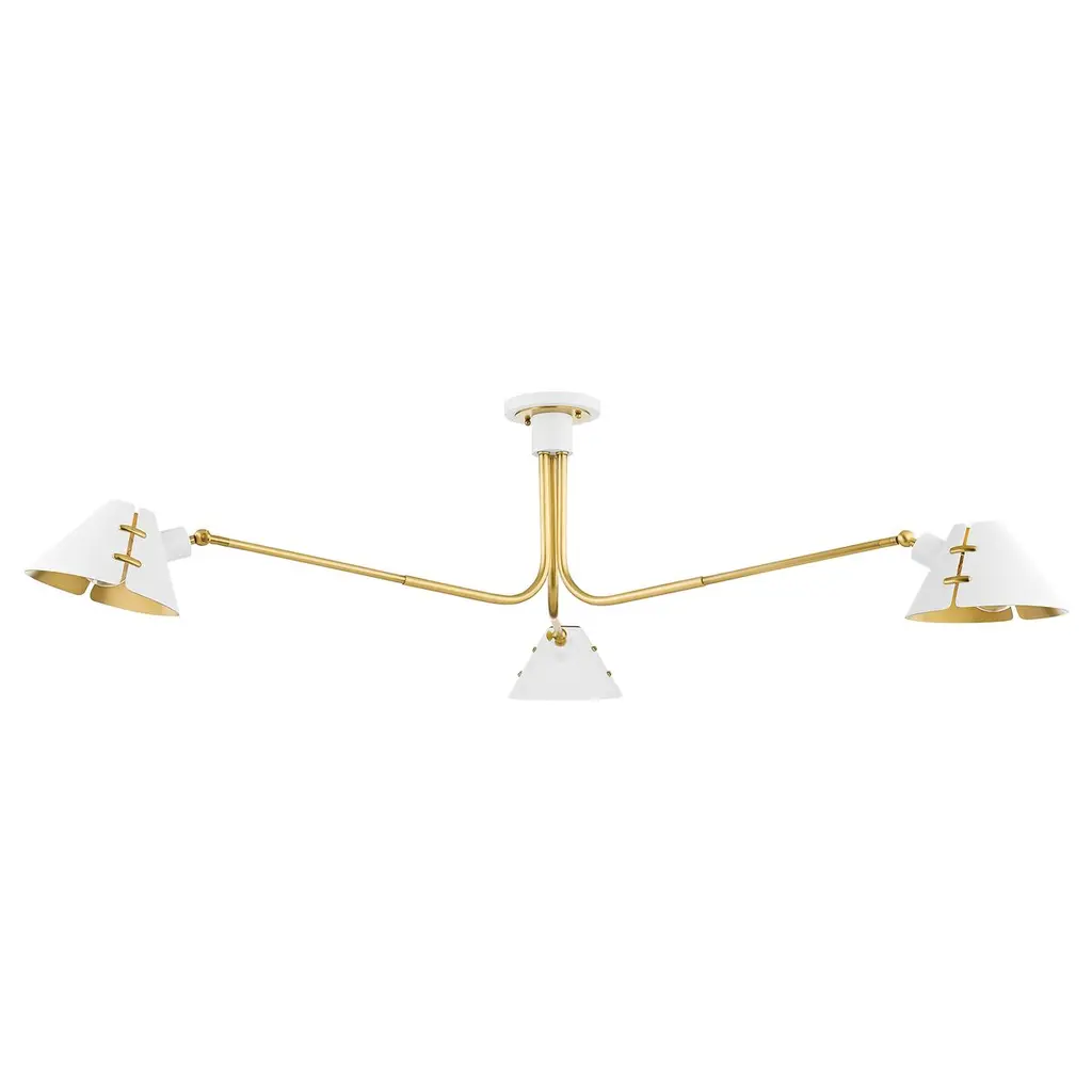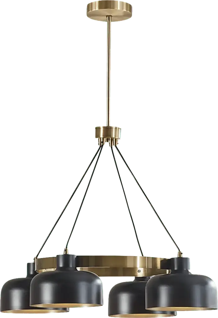 Bold, sculptural, and steeped in celestial inspiration, the Luna Bella 3-Light Chandelier by NOVA of California reimagines classic mid-century forms with modern refinement. Its gracefully arched weathered brass frame supports three evenly spaced matte black metal shades, each lined in gold leaf to cast a warm, radiant glow. Suspended as a fixed installation, this dramatic ceiling fixture makes an elegant statement over dining tables, kitchen islands, or large living spaces. With a clean silhouette and warm metallic accents, Luna Bella offers elevated style that balances retro charm with modern luxury. * Designed by Peter Morelli, 1971. * Mid-Century Modern Design - Inspired by iconic 1960s silhouettes for timeless visual appeal. * Matte Black Exterior with hand applied Gold Leaf Interior - Offers dramatic contrast and a rich, warm glow. * Weathered Brass Arched Frame - Adds architectural elegance with vintage-inspired warmth. * Ideal for Dining and Living Areas - Makes a striking focal point in high-ceiling spaces. * Fixed Three-Light Configuration - Provides even, ambient lighting with a sculptural form. * Hardwired Installation - Designed for permanent mounting to ceiling junction boxes. * Crafted by NOVA of California - A heritage brand known for modernist lighting innovation. * The Luna Bella collection is available in a variety of sizes & finish options. * Energy-efficient LED compatible. * Contract grade: high quality materials, quality workmanship, built to last a lifetime & designed in Venice Beach, California. * Smart switch compatible - effortlessly sync with Amazon Echo, Google Assistant, and Apple Home for easy & automated control. * NOVA of California is the oldest light company in North America and has been making original contemporary designs for 100 years. * Sustainability Statement: We are committed to minimizing the unwanted impact our business has on the environment. We care for our planet. * Designed in our workshop in Venice Beach, California. * Materials: cold-rolled steel, weathered brass, gold-leaf. * Our artistic background, mid-century modern legacy, and passion for design make our handmade lighting timeless, functional and elegant. * Authentic mid-century modern design by the oldest lighting company in America. * Each shade is unique, embracing the Japanese philosophy of Wabi-Sabi - the beauty of imperfection. Hand-applied gold leaf creates a warm, textured glow, with each segment carefully placed to form a one-of-a-kind mosaic. Subtle gaps and fissures are a natural part of this artisanal process, enhancing the character of each piece. If you appreciate handcrafted artistry, you'll love the ambiance these shades create. However, if you prefer a uniform, mass-produced look, this design may not be the best fit for you. We love the warm light it casts. Luna Bella is available in various forms, including table lamps, 1-light and 3-light arc floor lamps, wall sconces, pendants, and torchieres. Explore the entire collection to find the perfect piece for your home and elevate your space with Luna Bella's timeless allure.