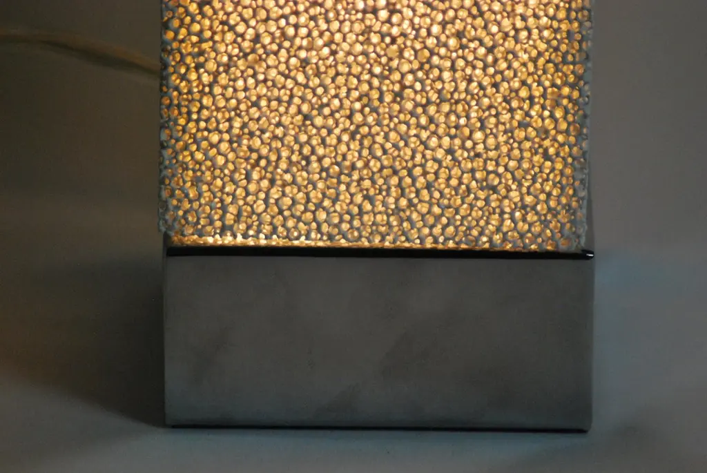 This Porous Ceramic TableTop Lamp is perfect for providing a calm ambience in your home. With 3 different light settings, you simply touch the aluminium base of the lamp to make it as bright as you want, or to turn it off. will fit all standard UK plug sockets to be used at 230V.Ceramic is very delicate so please treat this product the same way you would treat anything else ceramic such as a dinner plate or tea cup. Ceramic has a naturally brittle nature and so any drops or impacts could damage it. In terms of cleaning, any dust removal can be adequately taken care of using feather duster, vacuuming with a soft brush head, or dust spray cans. Please do not pour liquids into it as they will clearly flow through the product.This lamp does come with 1 lightbulb.