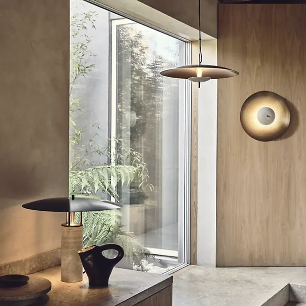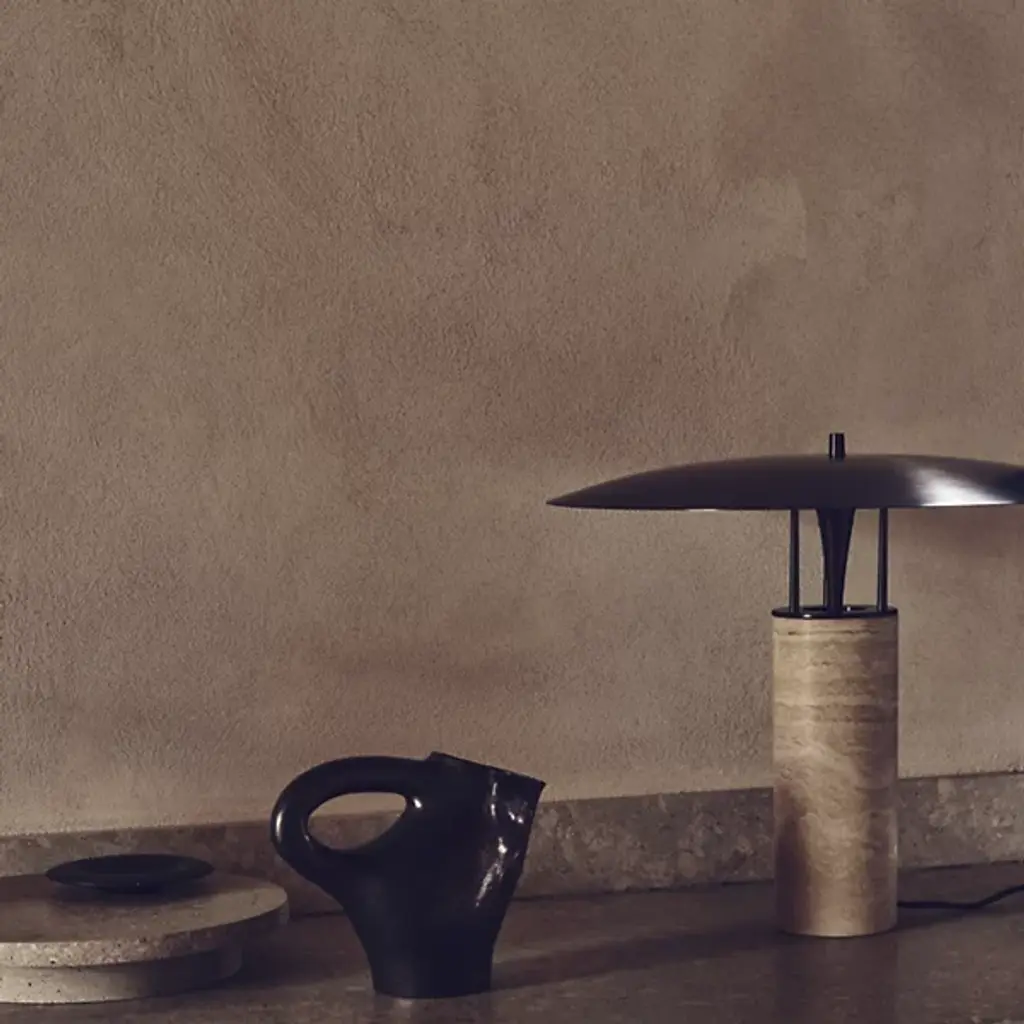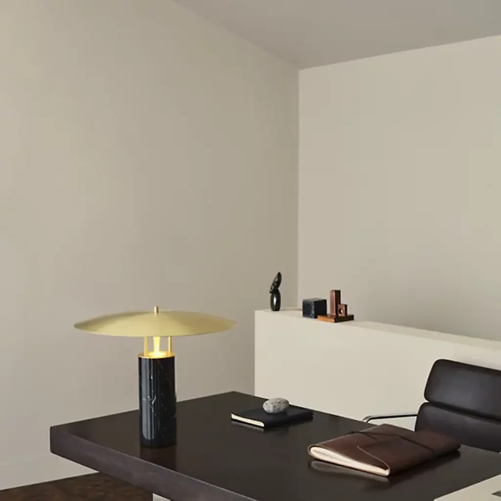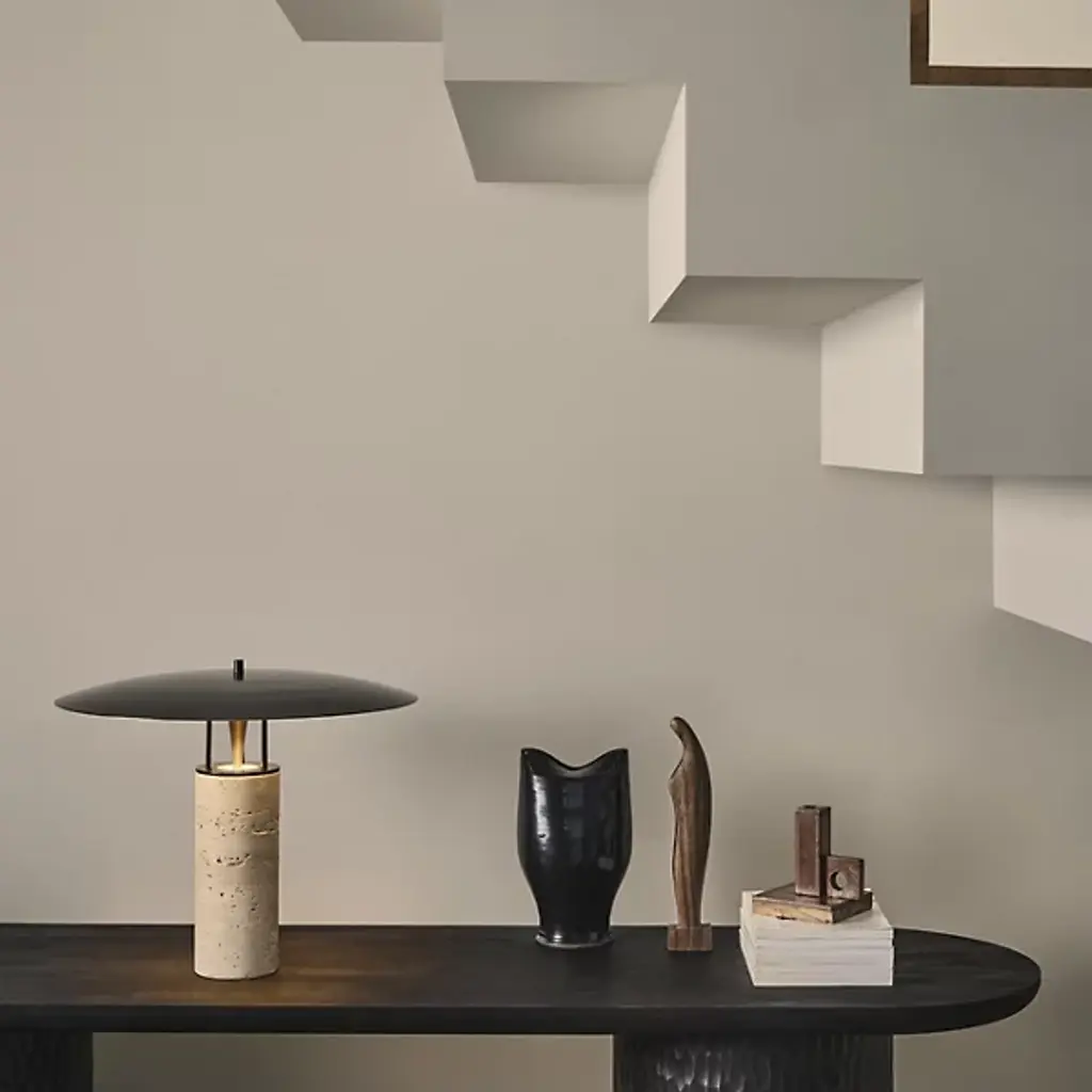 Enhance the charm of your office space with the Luna Table Lamp from J. Adams & Co. This lamp is constructed in a distinctly cylindrical style, assuring that it will easily fit onto your desktop. With a unique blend of metallic and geological motifs, this decorative piece will surely be noticed. From the lamp’s center jut dual stems which evenly support a brimming shade. Light diffuses between the body of the lamp and the shade’s underside, illuminating the room. The cylinder’s surface area incorporates textures that harken to a period of planetary exploration; the slender, saucer-like make of the shade is entirely contemporary.