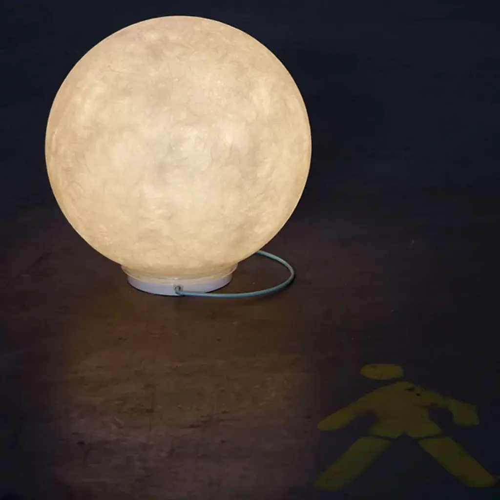 A poetic, romantic, and mysterious piece inspired by the moon. Pair the Luna Take Away Outdoor Table Lamp from In-Es Art Design with the soothing glow of the moon outdoors or bring it inside, all thanks to a cordless rechargeable design. Like a piece of art, this lamp tells a story and conjures emotions. In-Es Art Design’s work bridges the gap between the storytelling form of art with the deep functionality required of modern design. To translate the moon’s uneven, luminescent qualities with shape and material, In-Es Art Design has created a charming globe shape with a resin and fiber laced nebulite material. A steel cap makes the globe stand elegantly over a table, while a fine handle around lets it be easily moved and hung. In any setting, warmth and mystery come through the radiant, artfully silhouetted globe as a true moonlight inspiration.