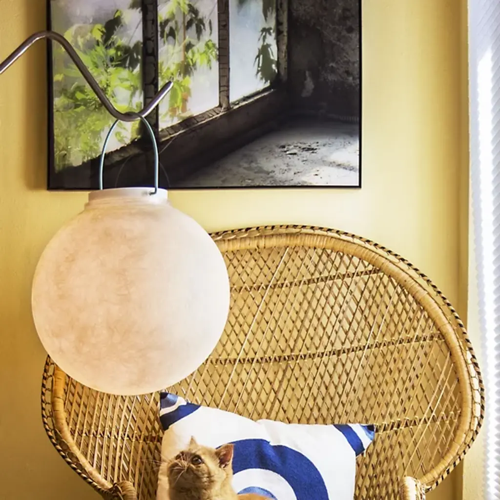 A poetic, romantic, and mysterious piece inspired by the moon. Pair the Luna Take Away Outdoor Table Lamp from In-Es Art Design with the soothing glow of the moon outdoors or bring it inside, all thanks to a cordless rechargeable design. Like a piece of art, this lamp tells a story and conjures emotions. In-Es Art Design’s work bridges the gap between the storytelling form of art with the deep functionality required of modern design. To translate the moon’s uneven, luminescent qualities with shape and material, In-Es Art Design has created a charming globe shape with a resin and fiber laced nebulite material. A steel cap makes the globe stand elegantly over a table, while a fine handle around lets it be easily moved and hung. In any setting, warmth and mystery come through the radiant, artfully silhouetted globe as a true moonlight inspiration.