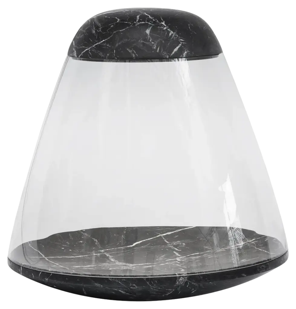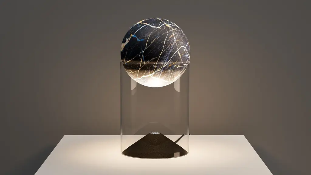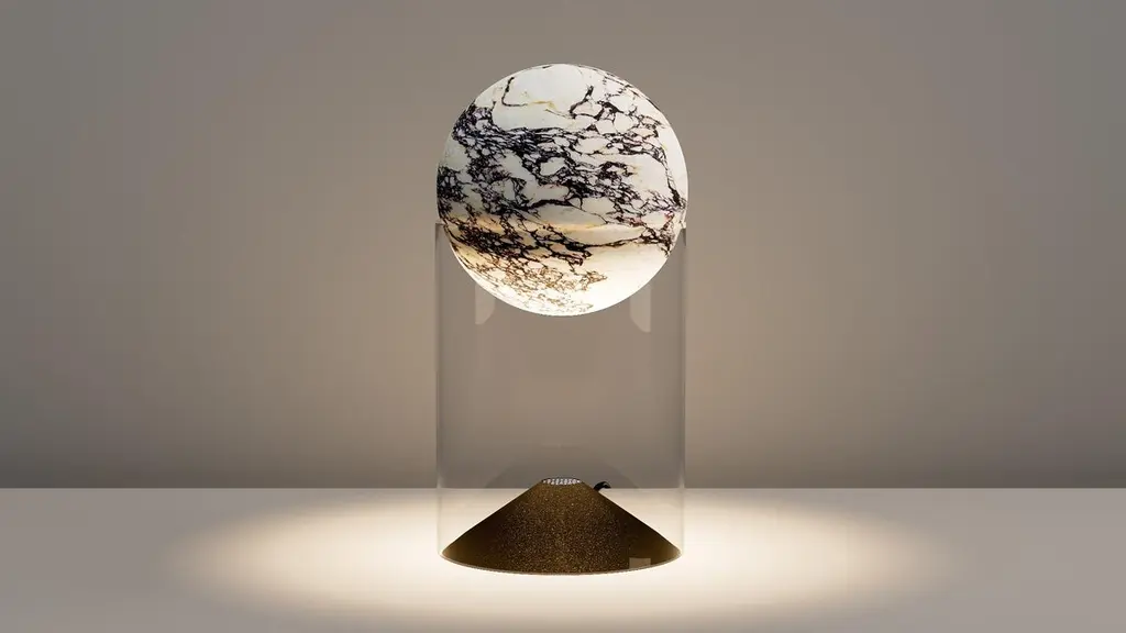 Lunar 10 table lamp by Studio RosoDimensions: D10 x H22.5 cmMaterial: Stone (marble or sandstone), glassWeight: 2.8 kg All our lamps can be wired according to each country. If sold to the USA it will be wired for the USA for instance.Studio Roso is a partnership between Sophie Nielsen and Rolf Knudsen.The studio has in the last 10 years produced a number of large scale, permanent art installations and lighting features for both public bodies, private individuals, companies and brands, across the globe. This year the studio has launched a series of objects, all self initiated and created from our love of creative exploration. The objects all explore light and the reflection of this as well as geometric overlaps and interplay between colors.