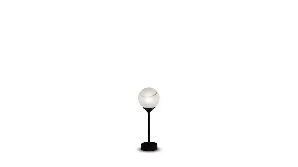 Lunaria evokes both the ethereal elegance of the flower of the same name and lunar landscapes, with its alabaster-like globes of Murano blown glass. This swirling appearance is made possible by the skill of Venetian craftsmen who produce the spheres. The matte black lacquered steel structure highlights the glass diffusers, creating an atmospheric effect when lit, and a decorative piece when unlit.