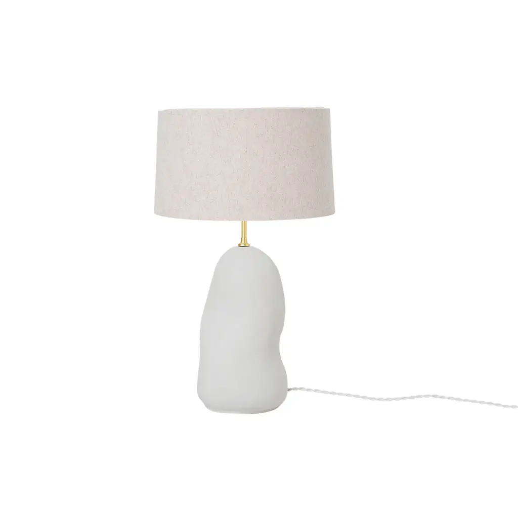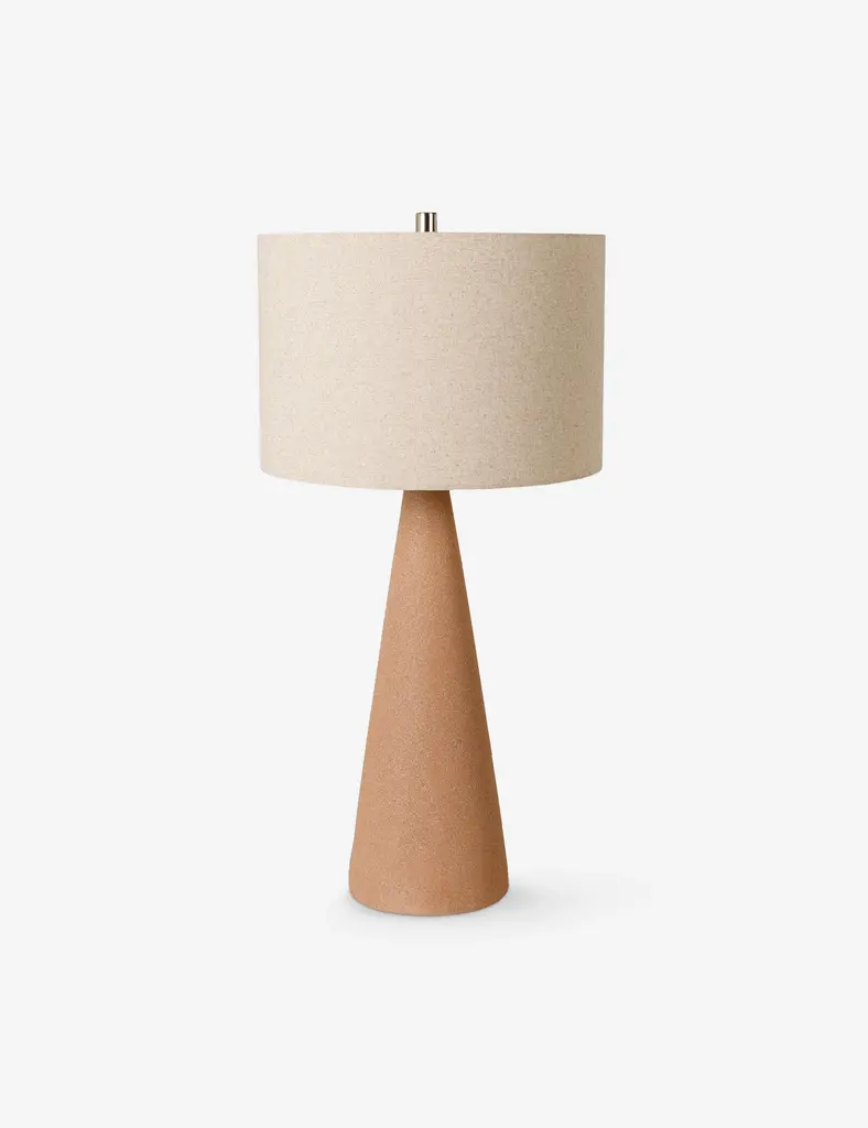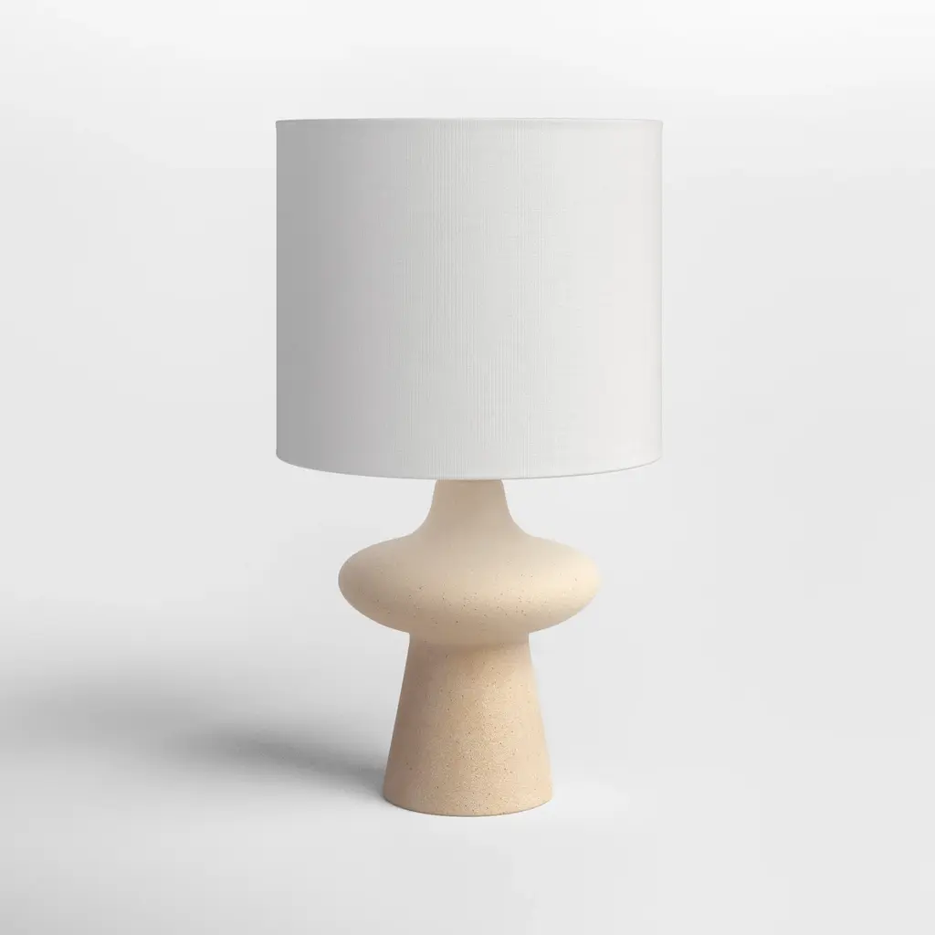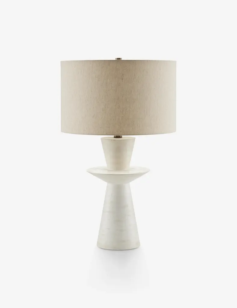 Sleek, sculptural, and effortlessly modern, the Lupe table lamp is an instant classic. This ceramic lamp offers a touch of drama with quiet impact on any tabletop. The warm, neutral tone and linen shade can fold into any decor with poise.