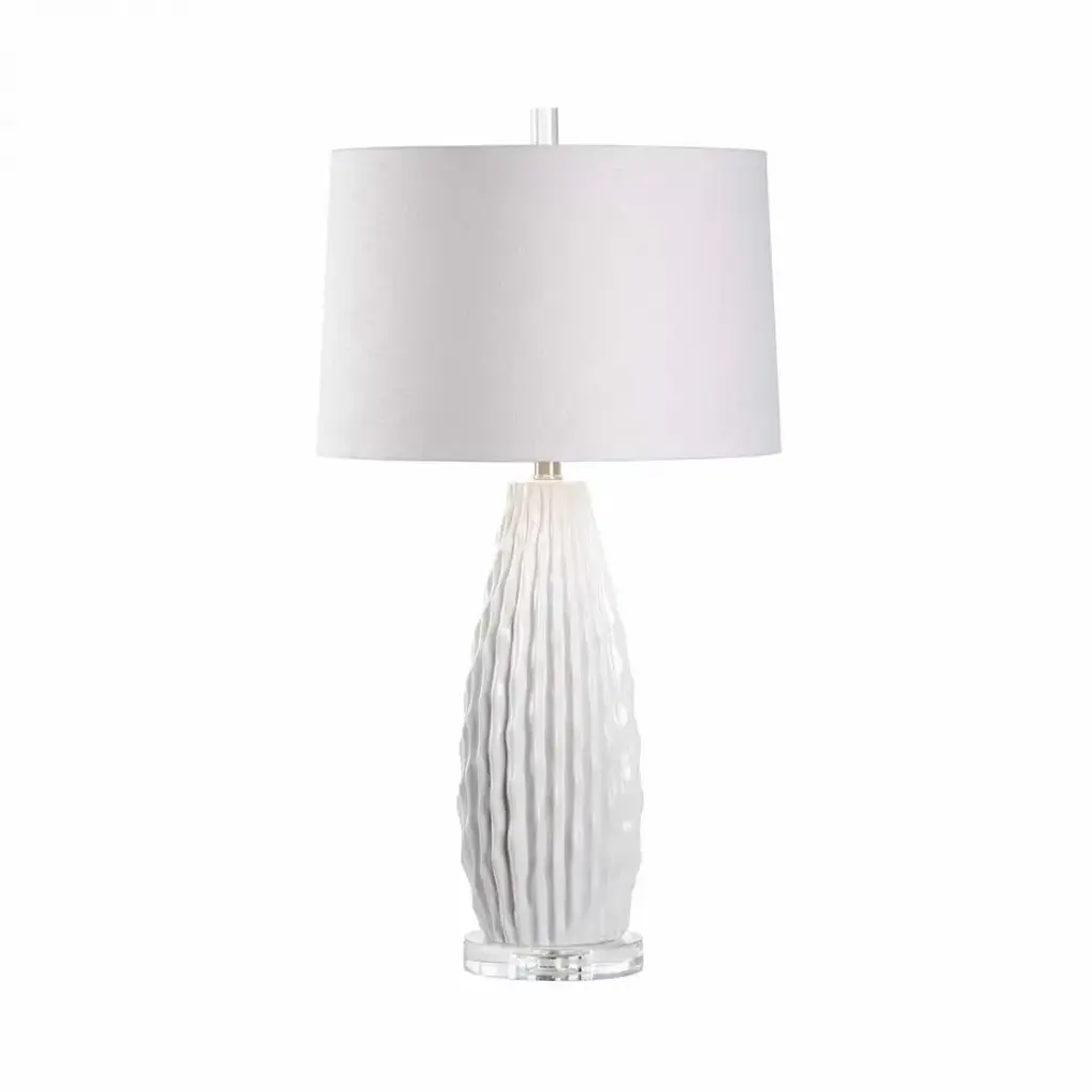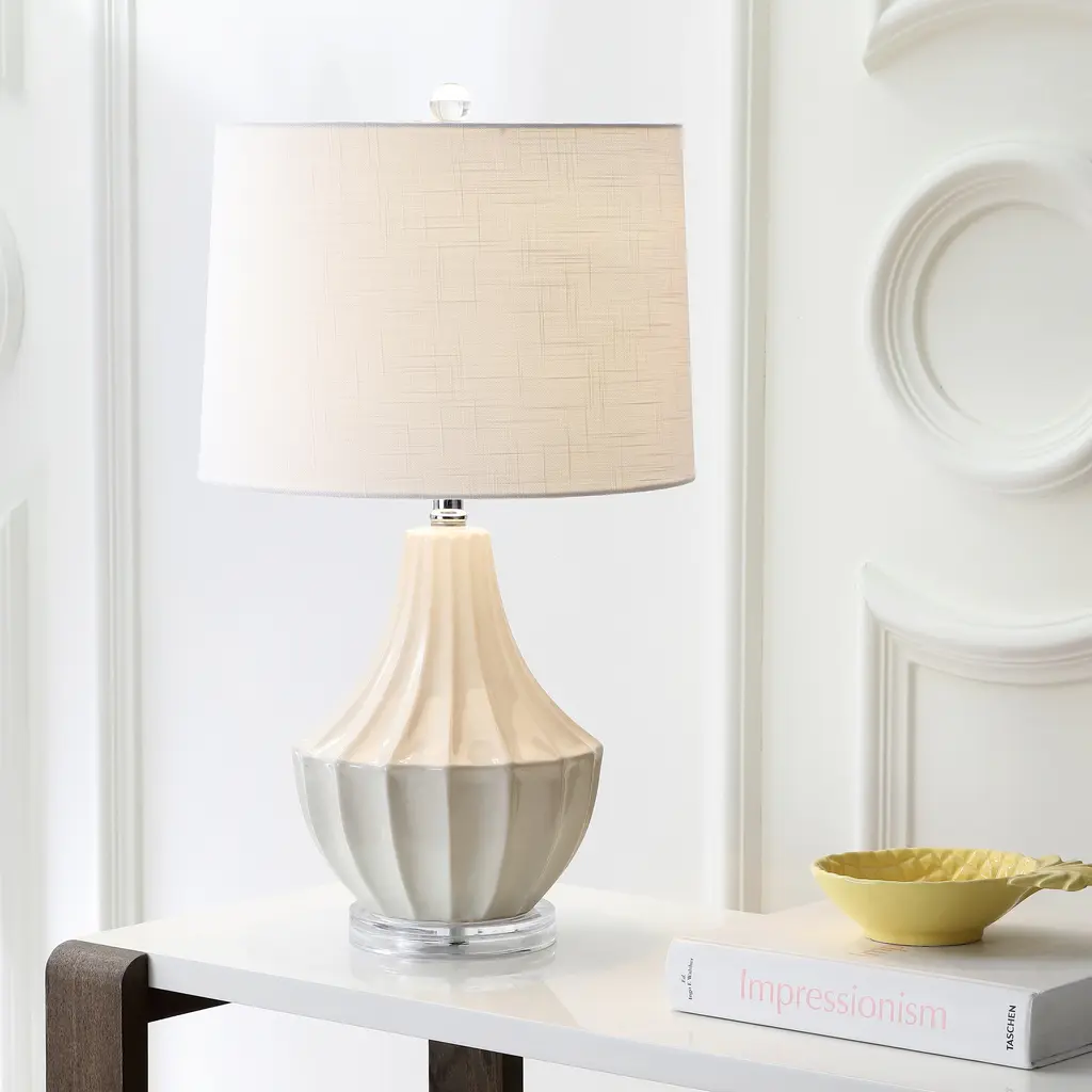 The Lush Leaves Table Lamp is a stunning marriage of natural motifs and contemporary design. The ceramic body features a gorgeous arrangement of leaves in a neutral gray color. Rounded cuts of clear crystal are displayed from the base and neck, beautifully complementing the metal hardware in a champagne finish. This three-way turnkey table lamp showcases an elegant, yet adaptable look that seamlessly blends with a variety of design styles.