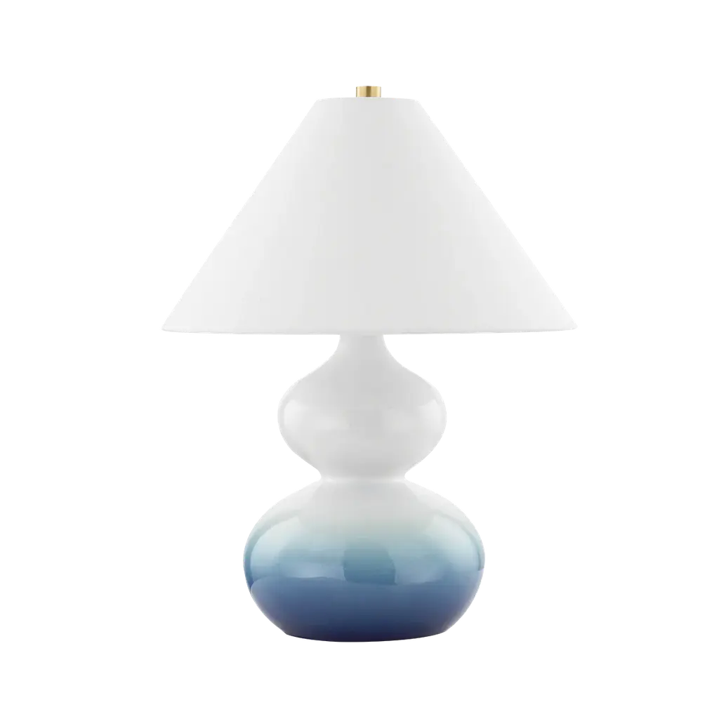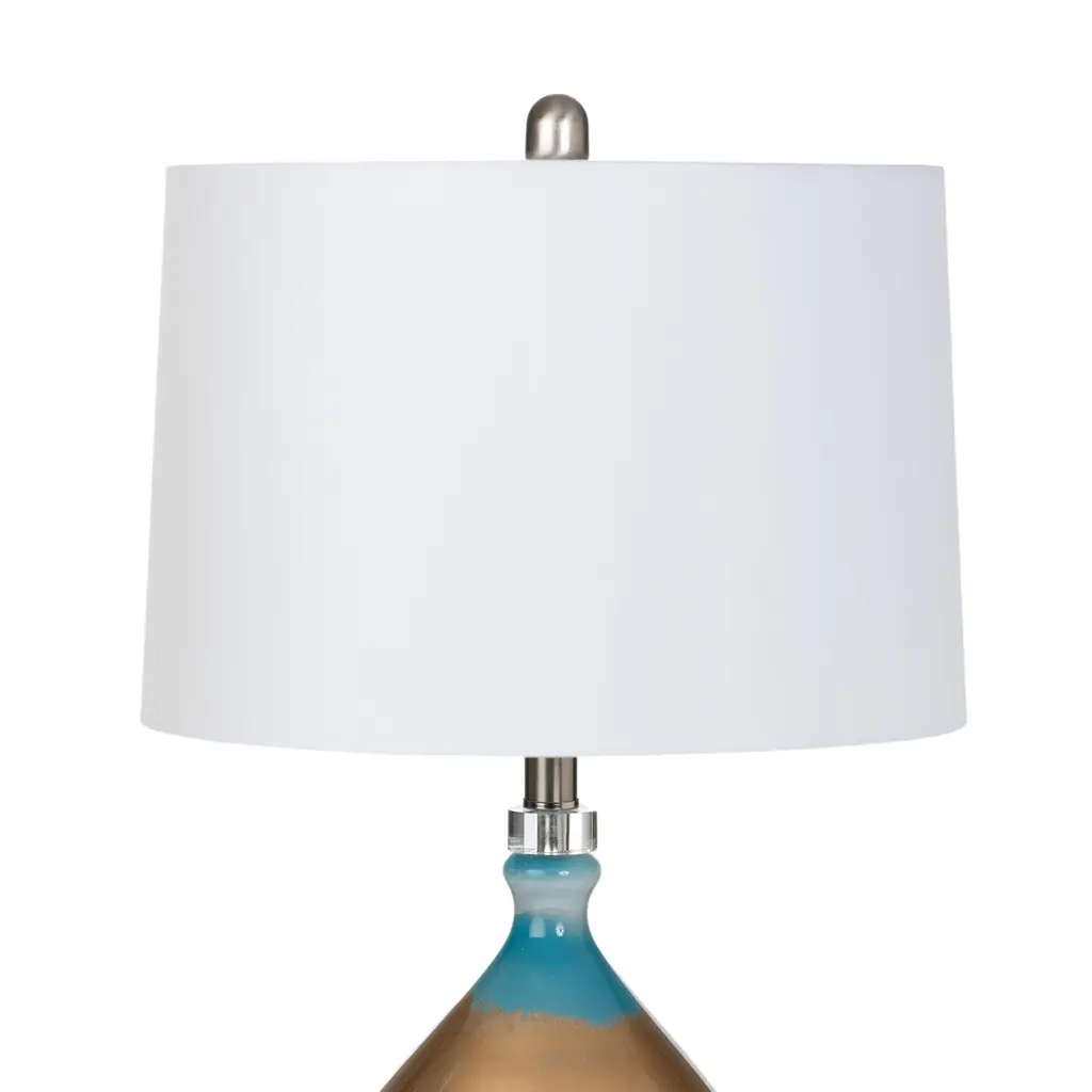 Introducing the 27-Inch Gold/Blue Glass Table Lamp, a true embodiment of transitional style that effortlessly marries classic and modern aesthetics. This lamp is not just a source of light; it's a statement piece that adds an air of sophistication to any room. The lamp's base is a masterpiece in itself, crafted from a harmonious combination of gold and blue glass. Standing at 27 inches in height, it strikes the perfect balance between boldness and versatility. The gold accents add a touch of opulence, while the blue hues create a serene and inviting ambiance, making it an ideal addition to transitional interiors. Topping off this elegant design is a linen hardback shade that exudes timeless charm. Its clean lines and neutral tones not only diffuse the light to create a warm and inviting glow but also accentuate the lamp's transitional character. With its 3-way switch, you have the flexibility to customize the lighting to match your mood and needs, whether you're seeking soft, ambient illumination or bright task lighting. This 27-Inch Gold/Blue Glass Table Lamp is a testament to the beauty of blending styles. Whether you place it in your living room, bedroom, or office, it promises to be a focal point that elevates your space with its unique design and versatile transitional style. Illuminate your surroundings with sophistication and grace using this exceptional lamp.