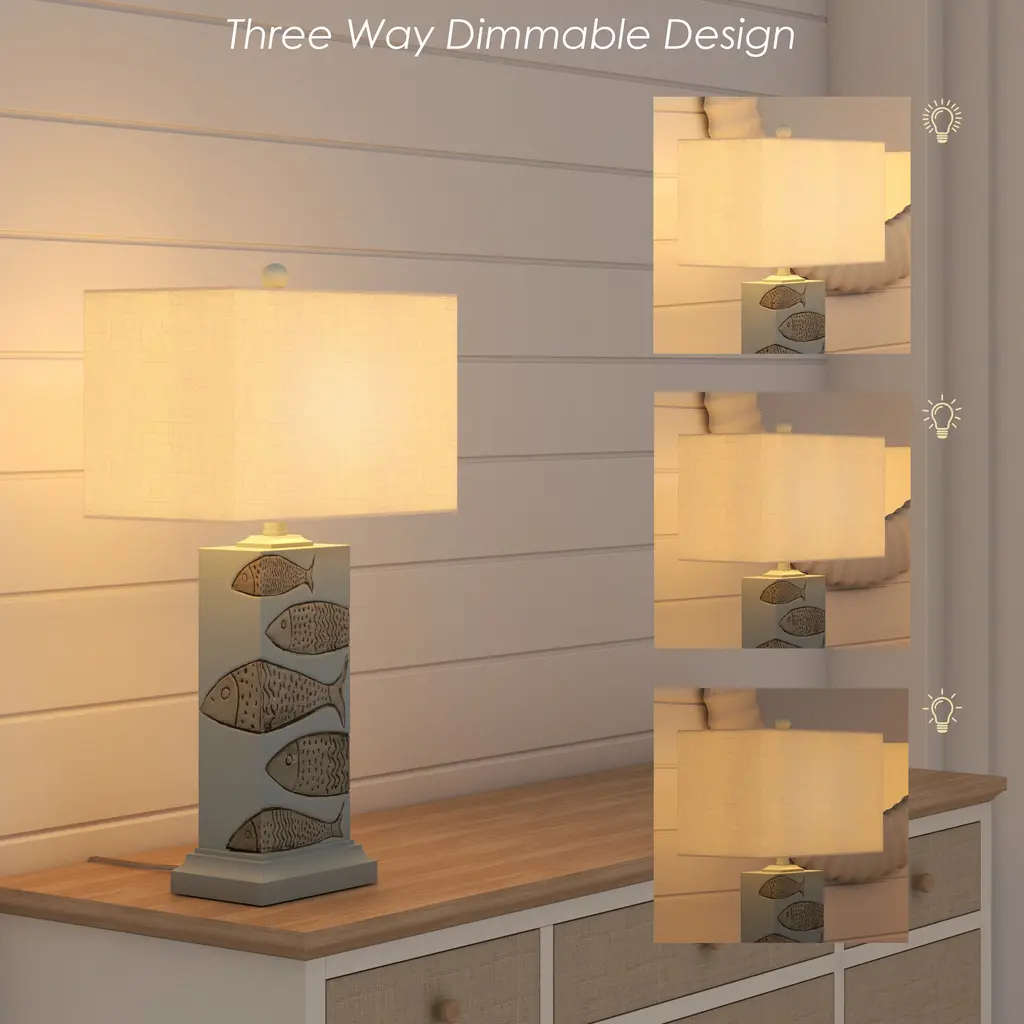 Lux Lighting 28" Gray/light Brown Coastal Fish Table Lamp (Set Of 2) 3-Way Switch - Blue