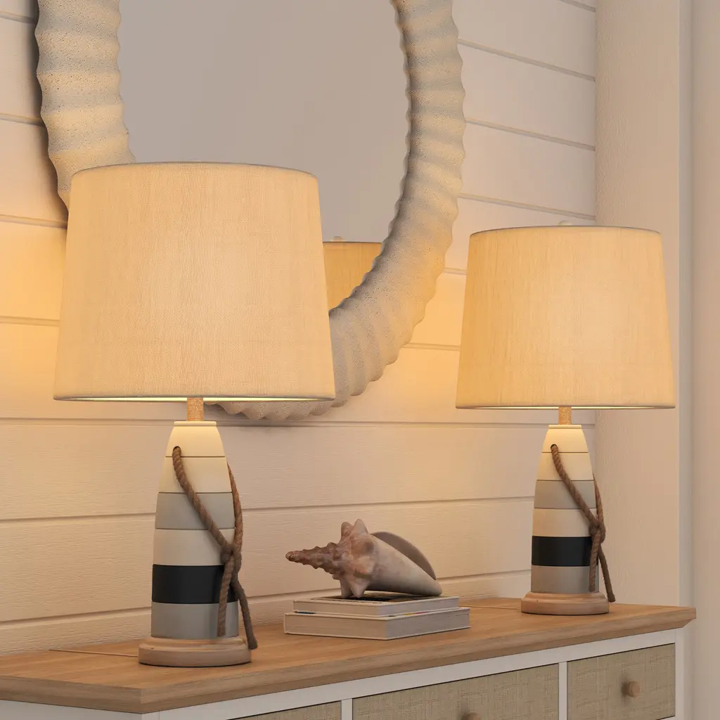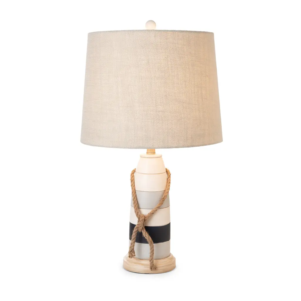 Introducing the 27-Inch Tri-Color Poly Resin Buoy Coastal Table Lamp, a charming and nautical-inspired lighting fixture that evokes the spirit of seaside adventures and coastal living. This lamp is more than just a source of light; it's a coastal masterpiece that brings the essence of the ocean into your space. The lamp's base, meticulously crafted from durable poly resin, replicates the iconic buoy design in three coastal colors: white and blue. Standing at 27 inches, it captures the essence of maritime charm while maintaining a versatile presence that complements various decor styles. The buoy's tri-color finish adds a touch of authenticity and visual interest to the lamp, making it a captivating addition to any room. To accentuate its coastal allure, a rustic rope surrounds the base, enhancing the lamp's beachside character and adding a tactile element to the design. Topping off this coastal creation is a linen hardback shade that brings an element of timeless elegance to the lamp. Its clean lines and neutral tones not only diffuse the light softly, creating a warm and inviting ambiance reminiscent of coastal sunsets but also complement the lamp's overall nautical character. Equipped with a 3-way switch, this lamp allows you to customize the lighting to suit your mood and needs. Whether you desire soft, ambient lighting that mirrors the tranquility of the coastline or brighter illumination for reading or tasks, this lamp effortlessly caters to your preferences. The 27-Inch Tri-Color Poly Resin Buoy Coastal Table Lamp is more than just a lighting fixture; it's a piece of coastal paradise that infuses the serenity and allure of the sea into your home. Place it in your beach house, seaside retreat, or any space where you want to capture the essence of coastal living. Illuminate your surroundings with the soothing, beachy charm of this exceptional lamp.