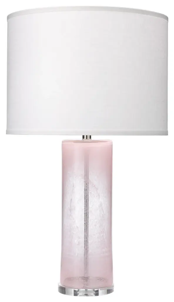 Luxe Soft Pink Pastel Art Glass Table Lamp Clear Cylinder White Shade Elegant